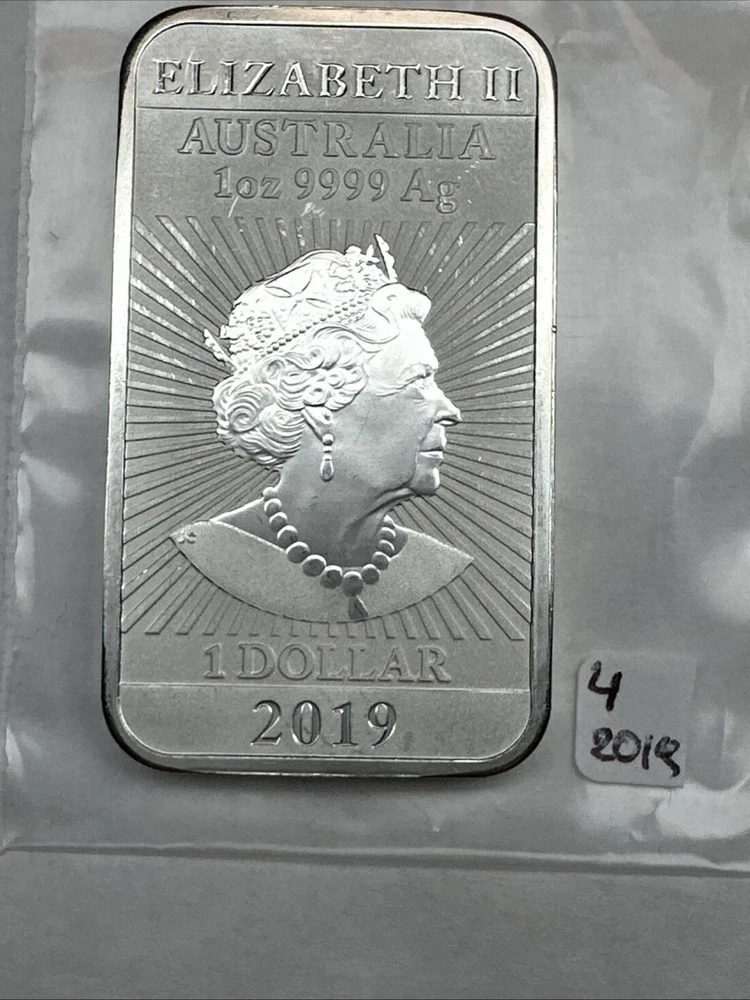 2019 Australia Dragon bar 1 oz Silver 0.9999 $1 Perth Mint Bar