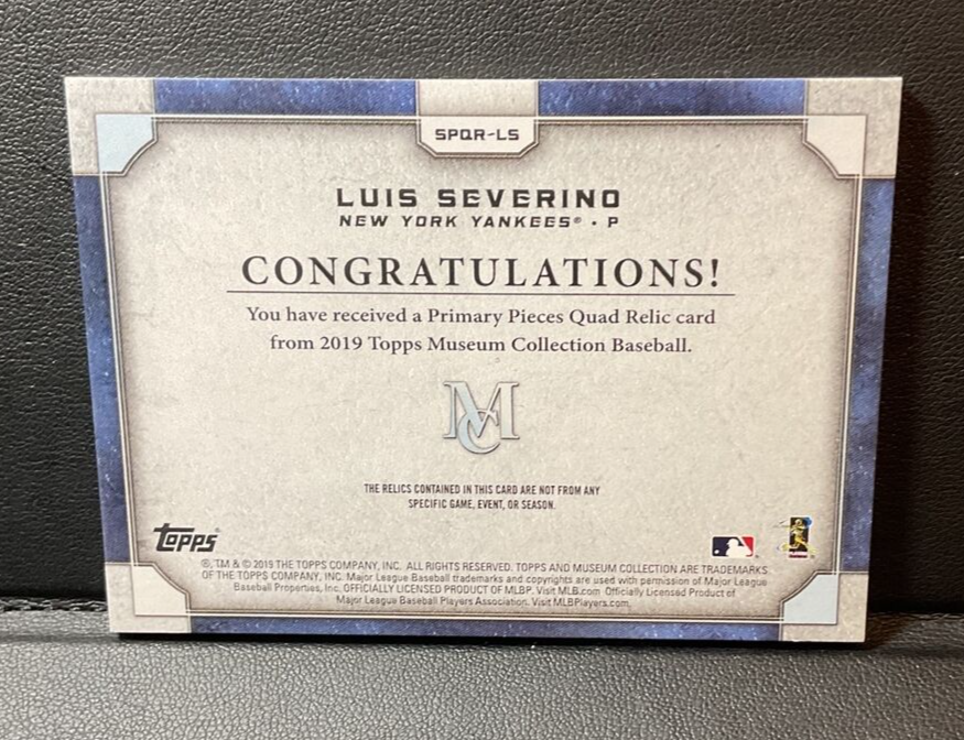 Home2019 Topps Museum Collection Luis Severino Primary Pieces Quad Relic /99 SPQR-LS