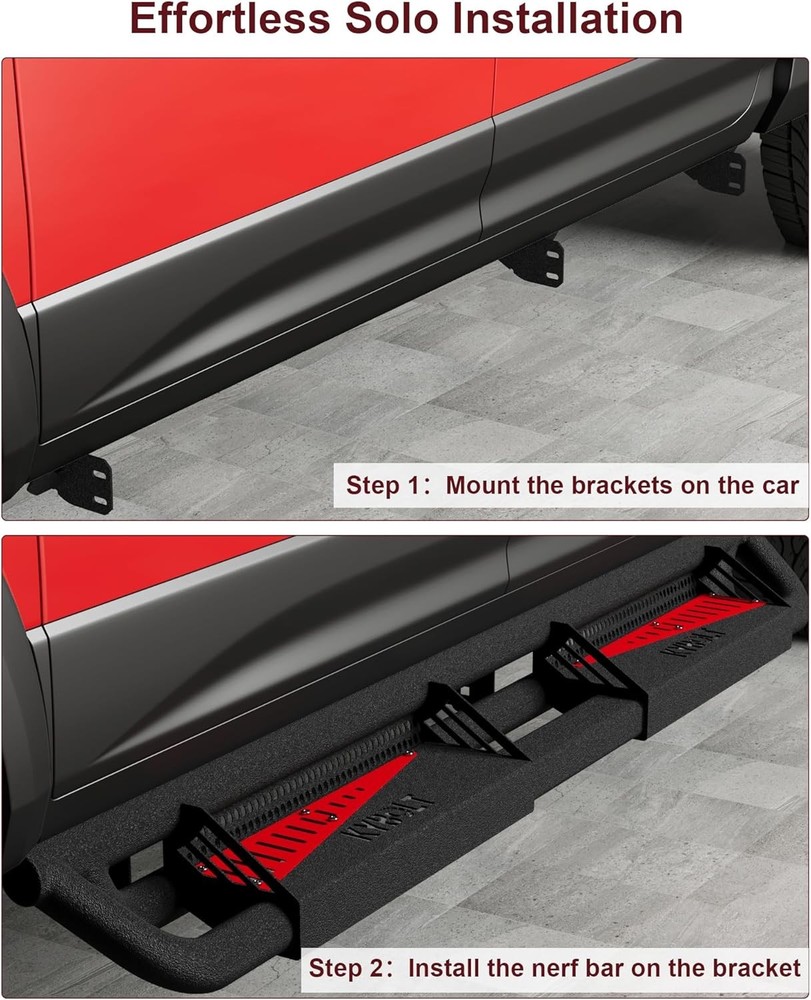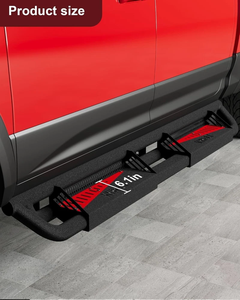 Just installed these steel running boards on my Ram 1500 and they look awesome! The heavy-duty alloy steel construction feels super solid, and they fit perfectly—no drilling required. Love how they protect the sides from road debris while making it way easier to step in and out of the truck. The textured finish gives great grip, even in wet weather. Super happy with the purchase—definitely recommend for anyone with a 2019+ Ram Crew Cab!