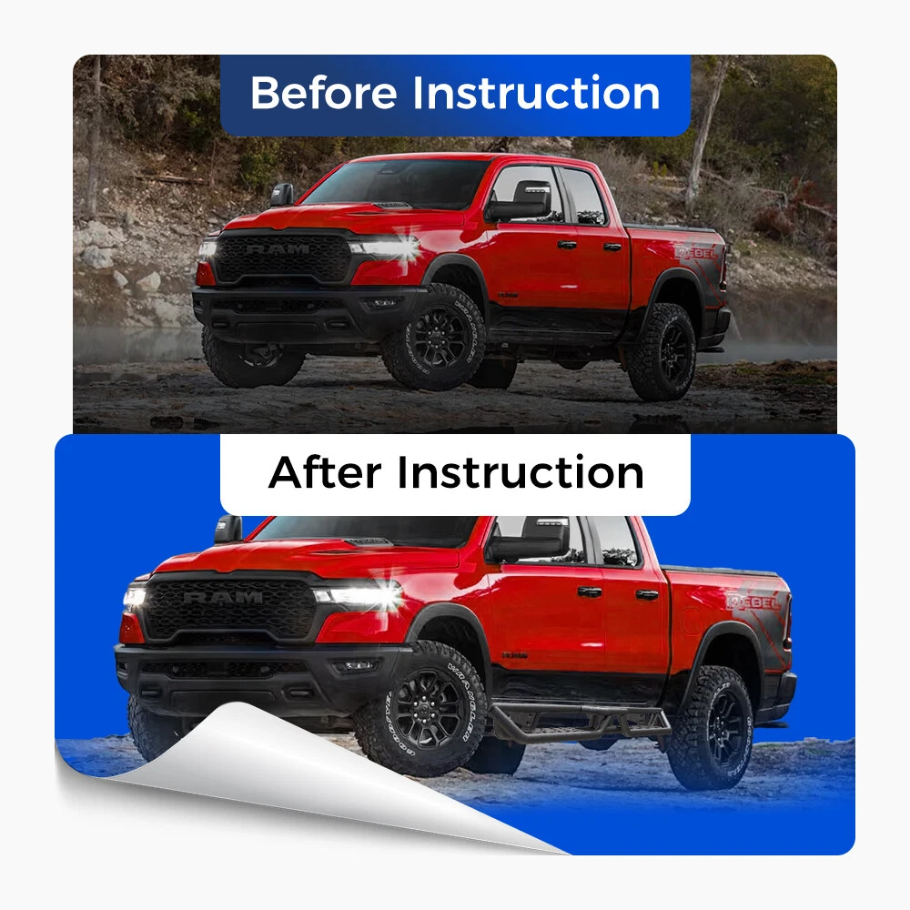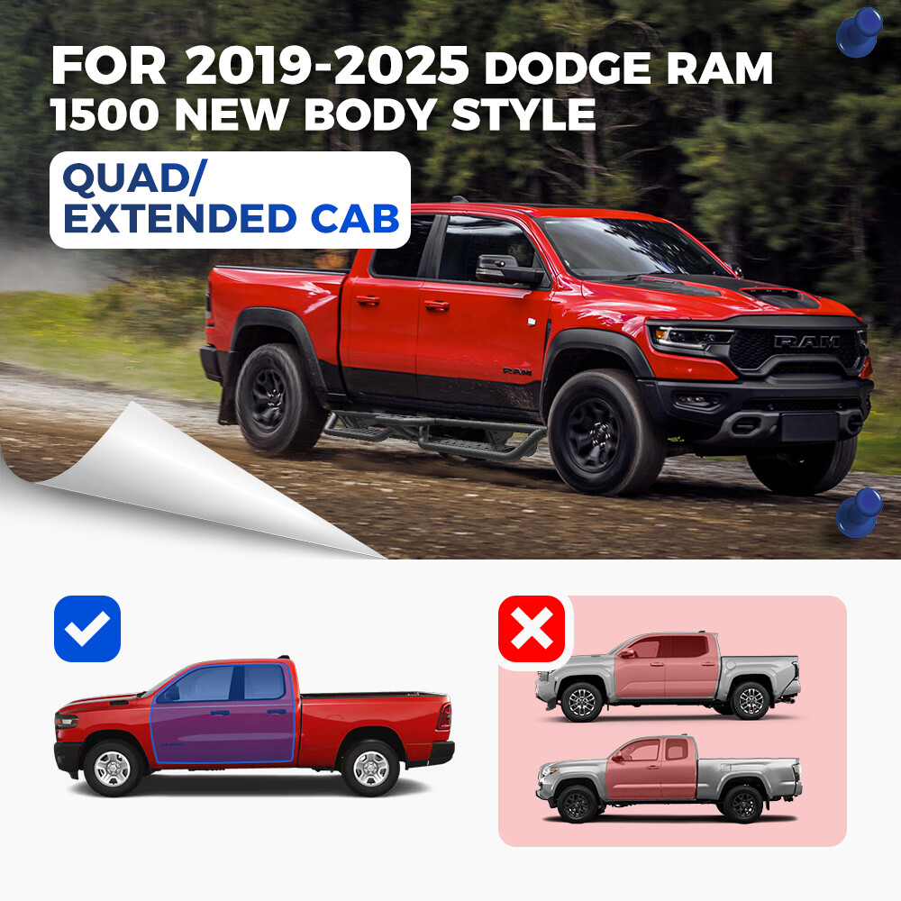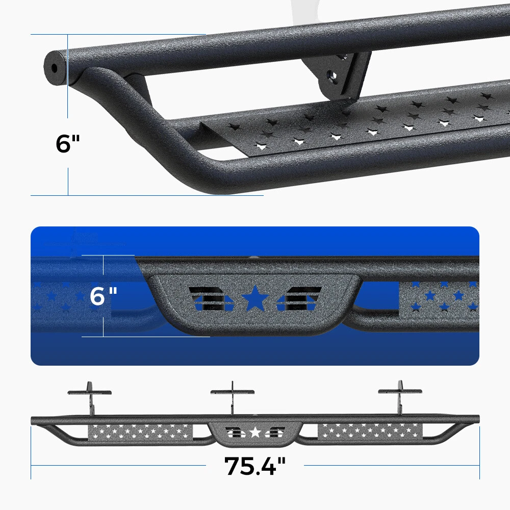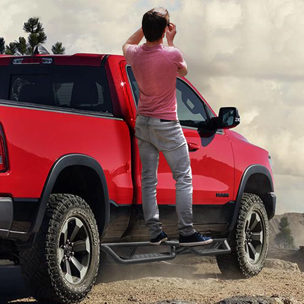 Running Boards for 2019-2025 Dodge Ram 1500 Quad Extended Cab Side Step Nerf Bar Compatible with 2019-2025 RAM 1500 New Body Quad Cab / Extended Cab Not for 2019-2025 Ram 1500 Classic If you’re not sure what model you have, please check the cab size picture. Features: Functional Protection: ① 6inch side steps feature two-stair layout to provide better convenience for vehicles with lift kits and oversized wheel tires. Also allows for easier rooftop operation.② Three-tube design provides more protection for the bottom and the side of the car, also preventing from getting stuck on the rocker plate or hanging obstacles Bolt-on Installation: Welded brackets provide additional strength.Package contains 2 nerf bars, set of brackets & hardware; Installation can be completed within 20 minutes with no cutting or drilling Strong and Durable - Unique powder coating offers exceptional rust and corrosion resistance so you can drive under any condition. The laser cutting step plate achieves a non-slipping step surface and reinforced grip. Proven to handle up to 550 lbs. without bending No-hassle Service and Note: The bracket is not pre-welded on the step bars! Buy with confidence! Please confirm the cab picture in the listing before ordering. Should any inquiries arise, feel free to contact us directly. For your safety, professional installation recommended. Packing 2 x Running Boards 1 x DIY Installation manual 1 x All accessories package kit Payment Shipping Warranty About us Contact us Payment We accept PayPal payment and so on. Payment should be completed within 4 (Four) days of auction closing. Or unpaid dispute will be filed for closing auction. We will leave a positive feedback immediately after payment is received. We appreciate a positive feedback as much as you do. If for some reason there is any issue with the purchase, please contact us prior to leaving feedback, we will be glad to work together and provide a satisfying solution. Shipping Please be aware that PO Box cannot receive items,please DO NOT fill in the PO Box address. DELIVERY DAYS: 3-7 BUSINESS DAYS 3 BUSINESS DAYS SHIPPING OUT SHIP FROM CA & TX & NJ & GA & NC &OR WAREHOUSE California Warehouse: City of Industry, CA Texas Warehouse: Houston, TX New Jersey Warehouse: Perth Amboy, NJ New York State Warehouse: Perth Amboy, NJ Georgia Warehouse: Austell,GA North Carolina Warehouse: Grove NC Oregon Warehouse: AIRPORT WAY Portland,OR Warranty This item comes with 12 months Warranty from the date of customers purchased it. Special circumstances will be listed clearly in the listing. If your item has been damaged in transit or become faulty in warranty period, please email us with pictures or video to show the problem. Please do check everything carefully after you received the parcel, any the damage except DOA (Dead-On-Arrival) would not be covered if it's your fault. Replacement products are provided with the same warranty as the returned products. About us Welcome to our eBay store. As a leading and emerging company in manufacturer and exporting business, we are specialized in Business and Industrial Products, Auto parts products, Home and Garden products for more than 10 years. We believe that it is our vision and mission to provide innovative products with best service and competitive price to satisfy you. Our goal is to make sure that you can find exactly what you are looking for and make it easy for you to place your orders. Contact us Email Customer Support: 9:00am-2:00am PST Sunday-Friday All emails will be responded to within 12-24 hours