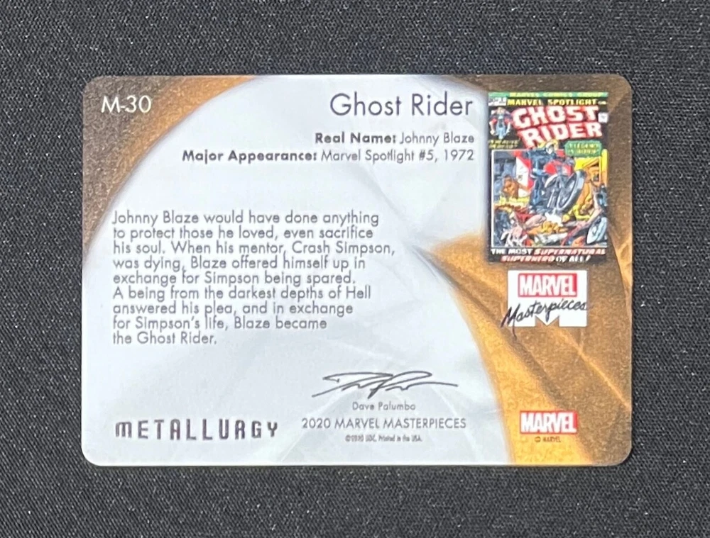 2020 MARVEL MASTERPIECES # 30 GHOST /25 METALLURGY INSERT CARD. CASE HIT METAL CARD M-30 IS IN GREAT (NM/M) OR BETTER. ALL MY ITEMS COME FROM A SMOKE-FREE HOUSE. SHIPMENT WILL BE SENT IN 2 DAYS OF PAYMENT. I WILL SHIP THIS CARD IN THE GREATEST OF CARE. BUYERS OUTSIDE OF THE CONTINENTAL U.S. MAY HAVE TO PAY EXTRA FOR SHIPPING. I DO OFFER COMBINE SHIPPING RATES. SO PLEASE CHECK OUT MY OTHER ITEMS. FEEL FREE TO MESSAGE ME WITH ANY QUESTIONS. THANKS FOR LOOKING AND GOOD LUCK.