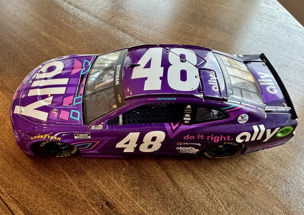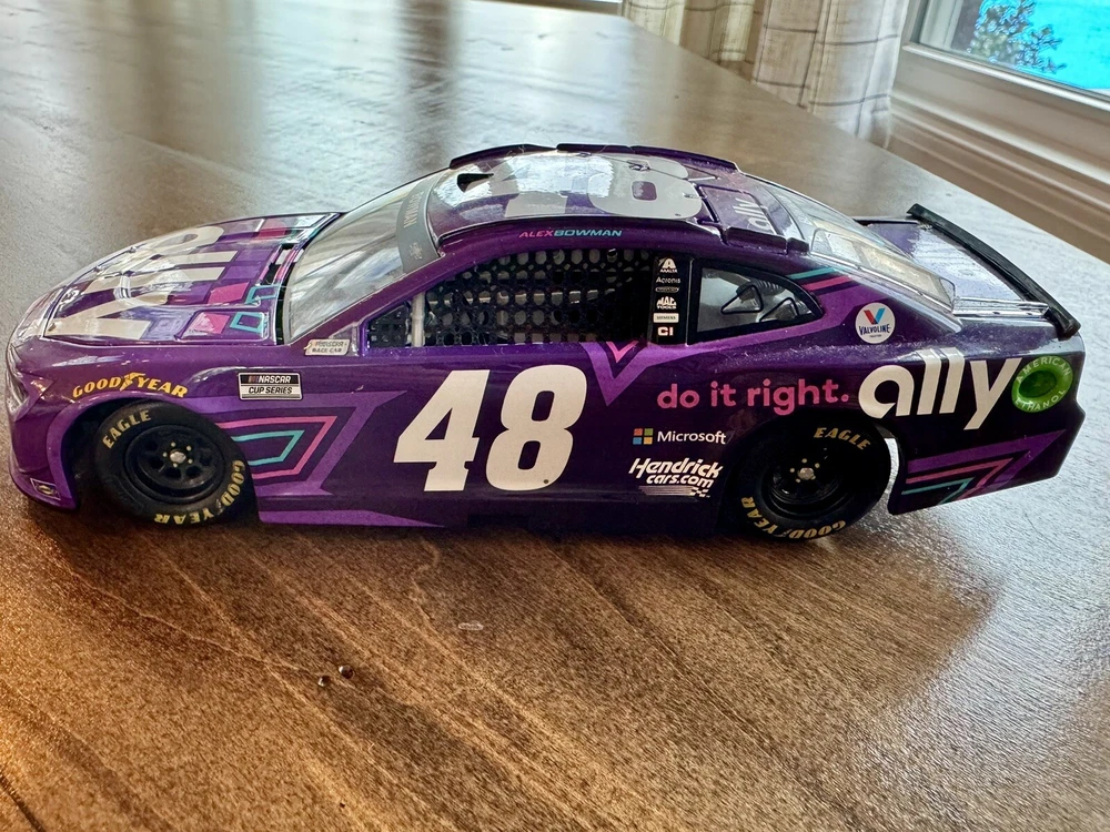 Gently used, and out of box with no stand. Very well taken care of though, and sat on a shelf in my ZOOM background. A great price for a great car!