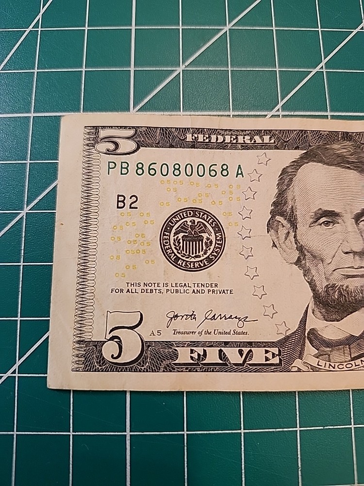 The 2021 Note - Trinary PB86080068 is a circulated $5 banknote from the United States. This Federal Reserve Note features a unique design and has not been graded or certified. It is a valuable addition to any collection of US paper money, representing a piece of currency history from the current year. I offer fast shipping with postal proof packaging. I do combine shipping on orders. Thank you for looking.