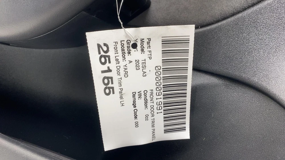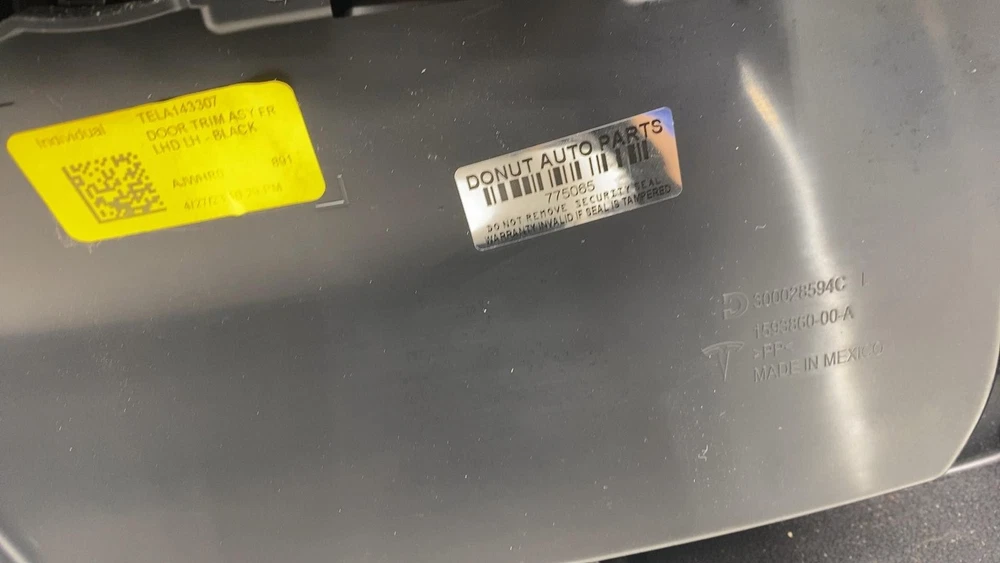 Donut Auto Dismantling Donut Auto Dismantling Rancho Cordova, CA Business Hours (PST/PDT) Mon - Fri 8am - 5pm Closed Sat & Sun Front Door Trim Panel Year: 23 Model: TESLA MODEL 3 Side: Left Type: Used Category: ND Condition: 0cc Vehicle Stock #: 25155 Part Stock #: 0000091991 Additional notes: Front Left Door Trim Panel Lh | 2021-2023 Tesla Model 3 Front Driver Side Interior Door Panel Trim Card Left Oem Interchange: Also fits: Search for more parts from this donor vehicle Search for more parts for TESLA MODEL 3 Dear Valued Customers Before ordering, please verify the part number and compare the physical details of your part with the photos in our listing. Tesla sometimes changes parts within the same model year, so even if the year matches, variations may exist. Examine all photos and read the description. Please contact us and ask any questions you have about the item. What you see in the pictures is what you will receive. Item are sold as Pictured in our ads, All the damages are marked in pictures with colored markings ........ indicated scratches, O indicate dents/dings view all photos and description. All Parts come with a 60-Day warranty Compatibility We are not responsible for compatibility, please order parts with the same part number to avoid delays and fitment issues in your purchase. Always verify O.E.M part numbers check fitment. Shipping & Return Policy For LTL and freight shipments: Please inspect an item before signing. For LTL and freight shipments of large items like Battery Packs, Seats, Doors, Trunks, Hoods, and other sizable body parts, a commercial address is mandatory . This must be a business equipped with a dock or forklift. Please note that deliveries cannot be made to restaurants, office buildings, or hotels. Please allow 5-11 business days from the shipping date to receive freight items. If a forklift is not available to unload your package, please ensure that you added liftgate service fee to your order. Residential deliveries have an extra charge required by LTL to cover liftgate usage and city ordinance. Be advised not all LTL freight companies offer lift gate services in every town especially in rural areas. If you do not have a commercial address or a proper residential address reach out to us to work things out LTL items can always be held at your local hub and made available for pickup. We offer free local pickup Monday through Friday, from 8:00 AM to 5:00 PM. What separates us from our competitors As Pioneers in the Tesla used parts market Donut Auto Parts is leading in the industry. We have been specializing in Tesla's for over 5 years. Our Staff are highly trained and experienced Tesla specialists. We strive to help you solve all your part needs. Local Customers For our local customers we provide installation on battery packs and drive units purchase. Drive unit and battery pack installations come with a 60 day warranty . All parts are fully tested. Using the industries leading tools, we also provide installation of other parts. Please reach out to us directly for more information. Be Advised Programming may be required for most electronic components. Donut Auto Parts is not responsible for any labor costs and other charges such as programming. NO RESTOCKING FEE Payment Payment must be submitted within 48 hours after purchase time. We have a Same handling time when paid by 2pm pst and 3-day handling time for LTL freight items. Feedback and Rating We always Strive to earn positive feedback. If you encounter an issue with one of our items, please contact us before leaving any feedback or opening a case give us the opportunity to solve your order issue. We strive to provide excellent customer service to ensure that everyone is satisfied, and to gain happy and returning customers! ALLOW US TO RESOLVE ISSUES BEFORE LEAVING YOUR FEEDBACK PLEASE CONTACT US FIRST Airbag Notification If the item above is an airbag, I certify this airbag is not subject to recall and will be shipped in accordance with hazmat shipping requirements . Powered by Checkmate