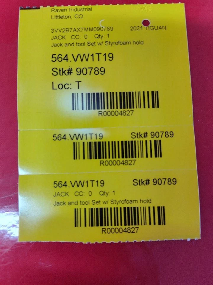 2021-2024 VW Volkswagen Tiguan Emergency Spare Tire Scissor Jack Tool Foam Set Description VERIFY PART # - LISTED FITMENT IS APPROXIMATE Jack & Tools will work with 2018-2024, but the foam only fits properly in 2021-2024 (You can possibly make it work, but it is not designed for pre-2021) 2024 Volkswagen Tiguan S, SE, SE R-Line Black, SEL R-Line 2.0L L4 - Gas 2023 Volkswagen Tiguan S, SE, SE R-Line Black, SEL R-Line 2.0L L4 - Gas 2022 Volkswagen Tiguan S, SE, SE R-Line Black, SEL R-Line 2.0L L4 - Gas 2021 Volkswagen Tiguan S, SE, SE R-Line Black, SEL, SEL Premium R-Line 2.0L L4 - Gas Donor Vehicle Model: TIGUAN Year: 2021 Mileage: 43000 (0 = not available or unknown) Stock Number: 90789 Notes: Jack and tool Set w/ Styrofoam hold Hollander Fitment Interchange - Please Verify Part Number When Available About Us Payment Shipping Returns Warranty About Us Listed fitment is approximate – If a part number is available, please verify before purchasing or send your VIN to verify fitment. Every used part we sell has been tested and inspected before removal. Keep in mind that used parts are used, but we do our best to photograph or notate any wear. New parts, when available, are in new condition unless otherwise stated. Parts Grading A standard code system is used to communicate the condition and quality of a part between automotive recyclers, automotive repair shops, and insurers. Knowing how these codes are used will help you understand whether the part meets your expectations before you buy it and what you can expect from the part when you receive it. A Grade - The highest quality part. It is of low miles and/or exceptional condition for its age. B Grade - The second level quality part. It is of average miles and normal condition for its age. C Grade - The third level quality part. It has high miles and/or light damage. No Grade - A part that has not yet been graded. Payment All orders must be paid in full prior to shipment. Payments are processed through eBay. If payment is not received within 3 days, your order will be cancelled. We accept credit card and cash for Local Pickup orders. Shipping Free Shipping: 1-10 Day Economy on non-freight items. Handling time is one (1) business day. AK, HI, PR & Protectorates: May have additional costs at checkout (or restricted shipping) depending on the item’s size and weight. Expedited options are available for small/medium items, and upon request for larger items if you provide your zip code. PO Box, APO/FPO: Large products are not feasibly shipped to these locations and may be excluded from certain items that are bulky or heavy. Freight Orders: Must have a commercial delivery address and part fitment must be verified by VIN prior to shipment. Handling time is two (2) business days for Freight, although carrier pickup time (when it gets onto a semi) can vary. We will communicate with you and provide a load tracking ID. International Orders: Are shipped via eBay’s Global Shipping Program. We are unable to see what eBay quotes for this service since we only ship to their international hub. Please note that international transit times can exceed 30 days due to delays with delivery carriers or customs. Please note that we do NOT control shipping delays. We can assist you in filing a lost package request if your delivery is stuck, but ebay's delivery algorithm is often extremely inaccurate. Free economy shipping can take up to 10 days. Returns All parts must be returned in their original condition to receive full credit. Our parts are marked to cut down on scam returns and we fight every bunk return. If you have a problem with your item, or it was broken during shipping, please contact us before starting a return to see if we can rectify the issue or expedite your refund. Please do not purposefully purchase parts to ‘try them out’ in your diagnostic process. This behavior is both discourteous and detrimental to parts recyclers. **ALL RETURNS ARE SUBJECT TO A RESTOCKING FEE AT OUR DISCRETION** Details regarding return shipping are outlined in the return section at the top of each individual eBay listing. Please message us with questions. Warranty All parts come with a standard 30 or 60 day warranty. The timeframe is listed within the Warranty section of the listing for each part. NO LABOR WARRANTY IMPLIED - PARTS-ONLY WARRANTY! Extended warranties for drivetrain components such as engines and transmissions may be available. Feel free to visit our website and learn more if you have made a purchase and want extra coverage. Copyright © 2020, All Rights Reserved. Raven Industrial LLC Copyright © 2022, All rights reserved. Design & Developed By : eFusionWorld