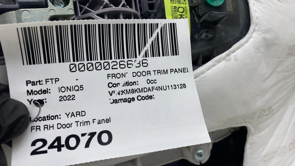 Donut Auto Dismantling Donut Auto Dismantling Rancho Cordova, CA Business Hours (PST/PDT) Mon - Fri 8am - 5pm Closed Sat & Sun FRONT DOOR TRIM PANEL Year: 22 Model: HYUNDAI IONIQ 5 Side: RIGHT Type: U Category: ND Condition: 0cc Vehicle Stock #: 24070 Part Stock #: 0000026686 Additional notes: FR RH Door Trim Panel Interchange: Also fits: Search for more parts from this donor vehicle Search for more parts for HYUNDAI IONIQ 5 Dear Valued Customers Examine all photos and read the description. Please contact us and ask any questions you have about the item. What you see in the pictures is what you will receive. Item are sold as Pictured in our ads, All the damages are marked in pictures with colored markings ........ indicated scratches, O indicate dents/dings view all photos and description. All Parts come with a 30-Day warranty Compatibility We are not responsible for compatibility, please order parts with the same part number to avoid delays and fitment issues in your purchase. Always verify O.E.M part numbers check fitment. Shipping & Return Policy For LTL and freight shipments of large items like Battery Packs, Seats, Doors, Trunks, Hoods, and other sizable body parts, a commercial address is mandatory . This must be a business equipped with a dock or forklift. Please note that deliveries cannot be made to restaurants, office buildings, or hotels. Please allow 5-11 business days from the shipping date to receive freight items. If a forklift is not available to unload your package, please ensure that you added liftgate service fee to your order. Residential deliveries have an extra charge required by LTL to cover liftgate usage and city ordinance. Be advised not all LTL freight companies offer lift gate services in every town especially in rural areas. If you do not have a commercial address or a proper residential address reach out to us to work things out LTL items can always be held at your local hub and made available for pickup. We offer free local pickup Monday through Friday, from 8:00 AM to 5:00 PM. What separates us from our competitors As Pioneers in the Tesla used parts market Donut Auto Parts is leading in the industry. We have been specializing in Tesla's for over 5 years. Our Staff are highly trained and experienced Tesla specialists. We strive to help you solve all your part needs. Local Customers For our local customers we provide installation on battery packs and drive units purchase. Drive unit and battery pack installations come with a 60 day warranty . All parts are fully tested. Using the industries leading tools, we also provide installation of other parts. Please reach out to us directly for more information. Be Advised Programming may be required for most electronic components. Donut Auto Parts is not responsible for any labor costs and other charges such as programming. NO RESTOCKING FEE Payment Payment must be submitted within 48 hours after purchase time. We have a Same handling time when paid by 2pm pst and 3-day handling time for LTL freight items. Feedback and Rating We always Strive to earn positive feedback. If you encounter an issue with one of our items, please contact us before leaving any feedback or opening a case give us the opportunity to solve your order issue. We strive to provide excellent customer service to ensure that everyone is satisfied, and to gain happy and returning customers! ALLOW US TO RESOLVE ISSUES BEFORE LEAVING YOUR FEEDBACK PLEASE CONTACT US FIRST Airbag Notification If the item above is an airbag, I certify this airbag is not subject to recall and will be shipped in accordance with hazmat shipping requirements . Powered by Checkmate
