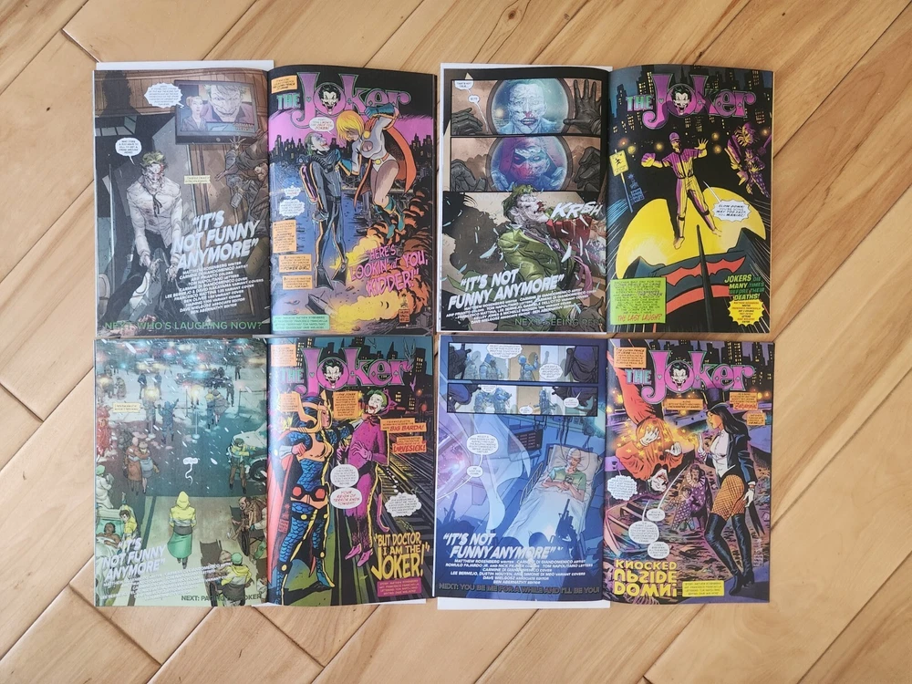 This 12-issue comic book lot features the Joker in a modern age storyline titled "The Man Who Stopped Laughing." The series is published by DC Comics and includes cover art by Carmine Di Giandomenico. The issues are all high grade 9.6 near mint+ and feature cover A. The series is written by Matthew Rosenberg with art by Francesco Francavilla and Carmine Di Giandomenico. It includes a range of features, including first printing and a set of issues. The intended audience is general, and the language is English. This collectible item is perfect for fans of action and US comics. Bagged and boarded shipped in Gemini mailer. USPS.