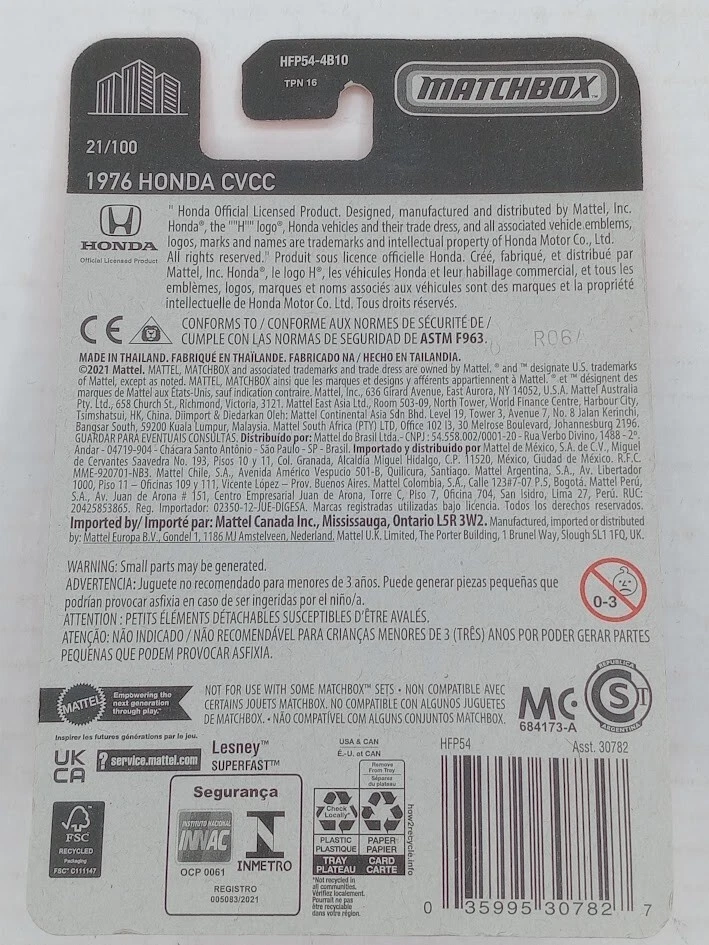 2022 Matchbox 1976 HONDA CVCC MBX Metro Red Color 21/100 1:64 Scale SKU#101096 Look closely at the pictures to see further details. We ships USPS PLEASE see photos for detailed condition!! AC PLEASE LOOK AT THE PHOTOS CAREFULLY BEFORE PURCHASING!! If you are purchasing more than one item from us and would like combined shipping, PLEASE request an adjusted invoice from us while still in the cart and BEFORE paying. eBay does not usually calculate combined shipping accurately and you might get overcharged. Please be aware that when we photograph items, we use lighting that will show the details well. Although we try to present the product as accurately as possible, the lighting may affect the overall look of the item by appearing lighter/darker or possibly a different hue than the actual item. Depending on the type of lighting you have in your home, there may be some differences between the photos and the actual item. If this is a concern of yours, please feel free to request additional photos made in natural lighting or ask for a more detailed description of the item PRIOR TO PURCHASE! PLEASE NOTE: We greatly appreciate your interest in our item for sale. We look forward to a pleasant, quick and satisfying transaction for everybody, so please note the following information before bidding. Thank you! ITEM DESCRIPTIONS: * We will try to describe items well and provide plenty of photos. Please review these carefully before bidding or purchasing. * Only the items pictured and described are what you will receive when purchased. * We will occasionally offer an item clearly marked "AS-IS". This means that we are not sure if it works because we are unable to test it for whatever reason. We will offer these at a discounted price then a similar "working" item. It is possible that these items will work fine, but it also is possible that these items are more useful for their parts. Please only bid on or purchase these items if you are well aware of this, as we will only provide refunds of actual item price (no shipping cost refunds) for these items. * If you have any questions that aren't addressed by the descriptions or photos, please feel free to ask before you bid. * There may be bends, dents or parts of the blister that have minor issues due to long term storage. Such things will be pointed out under the description, please look closely at the pictures for further details. SHIPPING: * We usually do not offer shipping to international addresses, but ARE WILLING TO TAKE CONSIDERATIONS. * We try to pack items as carefully as possible, but damage may occur during shipping. If you receive an item that was damaged in shipping, please contact us and we will work with you to resolve the problem. * We will combine shipping costs for all items the same buyer purchases from us within 2 days. Please wait to pay for items until you're done shopping with us. Please contact us if you're expecting to buy more items from us, or to have us adjust the shipping costs. * We will usually ship items out within 24 hours of payment being received Sunday through Friday at noon. We will notify the buyer if there will be a delay in shipping for some reason. Please allow additional time for holidays and weekends when the post office is closed. If payment is received after noon (EST) on Friday, the item might not be shipped until the following Monday. * We do try to recycle shipping materials as much as possible. RETURNS: We abide by eBay's Money Back Guarantee. We definitely want our customers to be happy with their purchase! You may return an item within 30 days of receiving it with the following guidelines: * If the item is defective or damaged (unless we clearly marked the listing "AS-IS"), the buyer will receive a full refund after the buyer returns it and it is received by us. Customers who falsely claim their item is defective, damaged, or not as described in order to receive a full refund and free return shipping will be permanently blocked from making future purchases from us. * If the item is as described (including "AS-IS" items) and the buyer decides for any other reason than defective/damaged to return it, only the actual price of the item will be refunded once it has been returned and it is received by us. The buyer will be asked to pay all original and return shipping charges. This includes all reasons other than defective/damaged, including wrong size, wrong type, changed mind, etc. All "AS-IS" items will fall into this category of return. Please make sure the item is what you want before purchasing it. * Please contact us before initiating a refund request. FEEDBACK: We always leave feedback at the end of transaction. We consider the transaction to be over when we receive feedback from the buyer confirming the item arrived satisfactorily. If you are unsatisfied with your purchase please contact us before leaving neutral or negative feedback. WE APPRECIATE POSITIVE FEEDBACK IF YOU ARE SATISFIED WITH YOUR PURCHASE! THANK YOU FOR YOUR INTEREST IN THIS ITEM! !