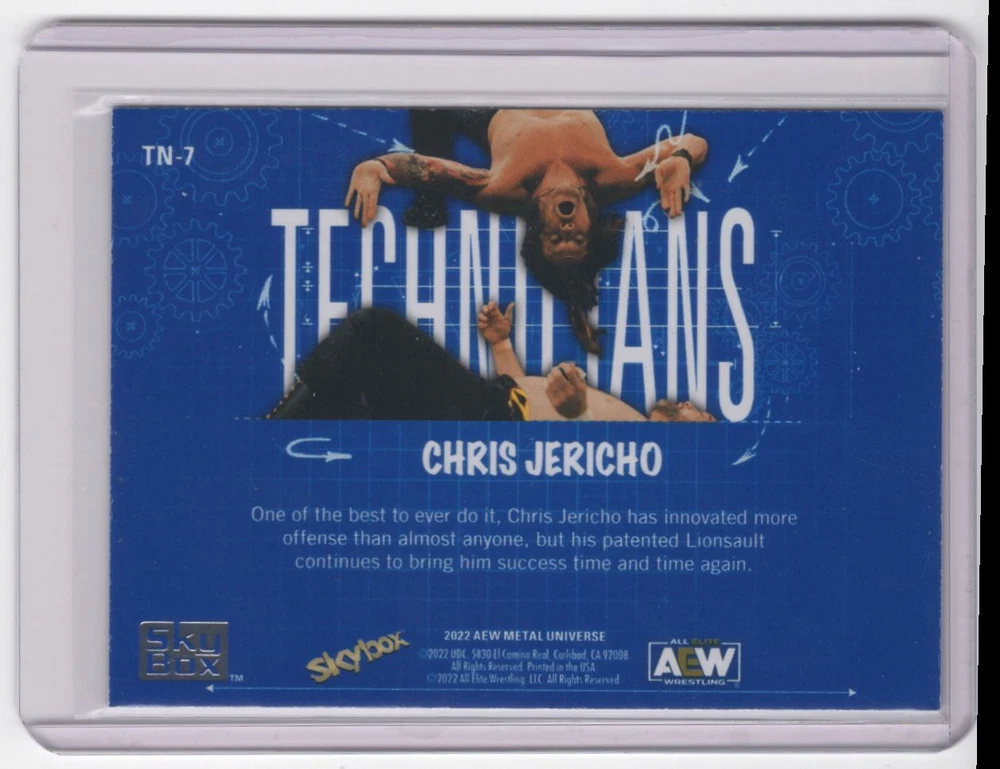 About Me Other Listings Feedback Add to Favorites Contact Me Striking Cards 901 2022 SkyBox Metal Universe AEW Technicians Chris Jericho #TN-7 No stock photo / These are real scans or pictures Details Description: Chris Jericho Category: Wrestling Year: 2022 Product: SkyBox Metal Universe AEW Technicians Card Number: TN-7 Dimensions: 4" x 3" SKU: WR B0001 R01 C (523) Shipping If combined shipping is requested, we will send an invoice with the combined shipping charges as soon as possible. Please keep in mind that, in order to keep shipping costs down, we may need to put two cards into the same top-loader. Also, keep in mind that the tracking on eBay Standard Shipping (plain white envelope) is not very dependable. If you would like upgraded shipping to Ground Advantage, which gives more accurate tracking, just ask and we'll send you an invoice with those amounts! Listing By Kronocard trading cards software v2.6.5.5