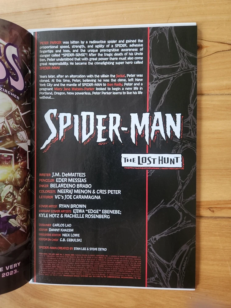This is a rare and highly sought-after 2022 Spider-Man: The Lost Hunt 1C: Edge Variant comic book. This single issue features the popular superhero team, Avengers, and their adventure in the Marvel Comics Universe. The issue is in high grade 9.6 Near Mint+ condition, making it a valuable addition to any comic book collection. The comic book has a modern age era and belongs to the action genre. It has a variant type of cover variant - C and features a first printing, boarded, and variant cover. The artist/writer is J.M. Dematteis and Ryan Brown, and the cover artist is Edge. This issue is intended for a general audience and is written in English. Get your hands on this rare and exciting Spider-Man: The Lost Hunt 1C: Edge Variant comic book today! Bagged and boarded shipped in Gemini mailer.
