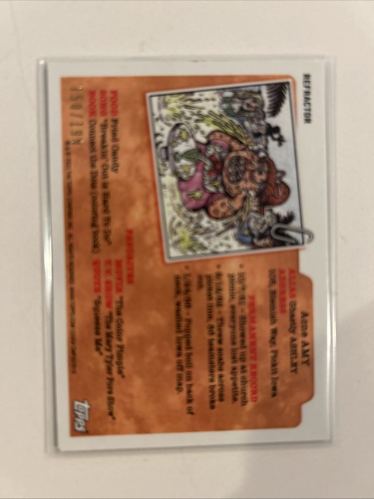 This 2022 Topps Chrome Garbage Pail Kids Series 5 Aqua Prism Ref #202b Tanya Hide trading card is a must-have for any collector. The card features a stunning design and is made of high-quality card stock with a thickness of 35 Pt. It is an original and licensed reprint with a print run of 199. The card is part of the Aqua Prism Refractors insert set and features a parallel/variety design. It is a non-sport trading card with a genre of parody and comedy. The card is suitable for anyone aged 6+ and is manufactured by Topps in the United States. It is a great addition to any collection and is sure to impress.