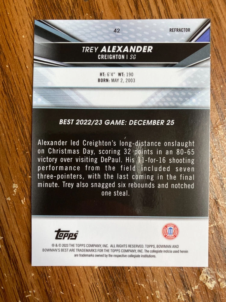 2022-23 Bowman's Best U University #42 Trey Alexander Silver Refractor Creighton