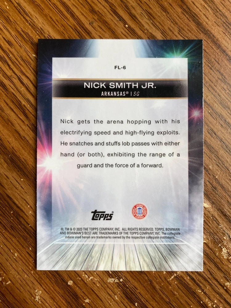 2022-23 Bowman's Best U University NICK SMITH JR FL-6 Flashing Lights Insert