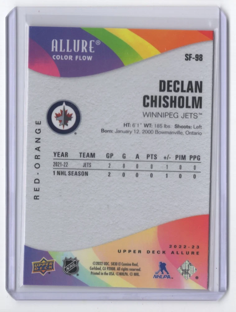 About Me Other Listings Feedback Add to Favorites Contact Me Striking Cards 901 2022-23 Red-Orange Declan Chisholm Winnipeg Jets #SF-98 No stock photo / These are real scans or pictures Details Description: Declan Chisholm Category: Hockey Year: 2022 Product: Upper Deck Allure Color Flow Set: Red-Orange Team: Winnipeg Jets Card Number: SF-98 Dimensions: 4" x 3" SKU: HK B0001 R01 B (80) Listing By Kronocard trading cards software v2.6.5.3