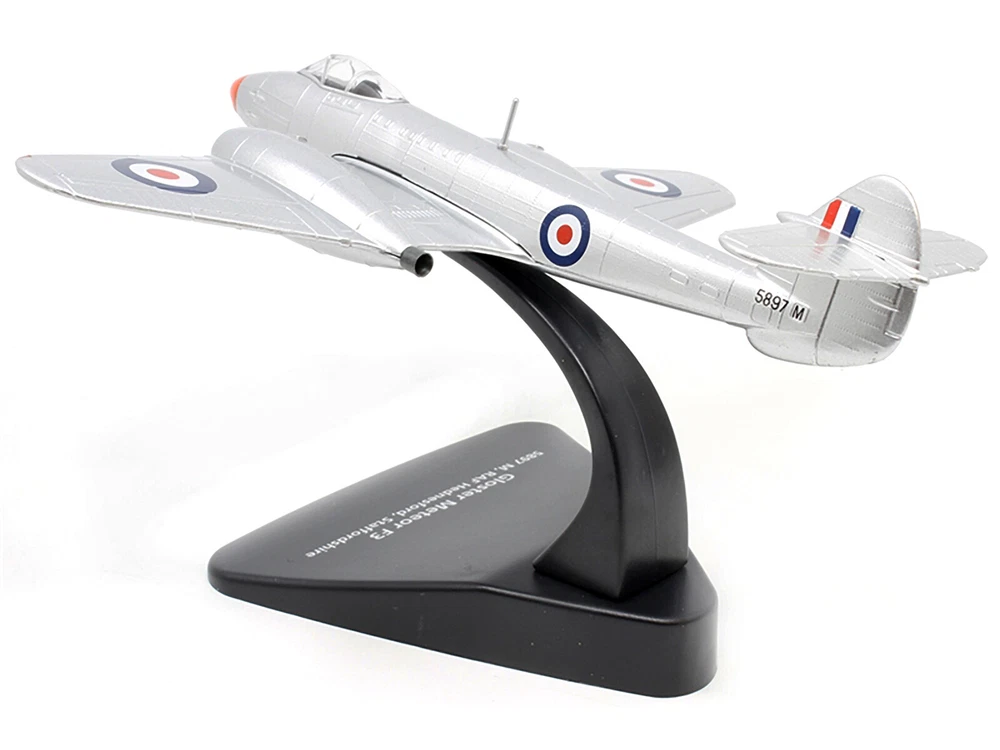2023 Gloster Meteor F3 Jet Fighter 1/72 Diecast Model - RAF Oxford Aviation | eBay 2023 Gloster Meteor F3 Jet Fighter 1/72 Diecast Model - RAF Oxford Aviation Product Details Gloster Meteor F3 Jet Fighter 1/72 Scale Diecast Model Introducing the stunning Gloster Meteor F3 Jet Fighter 5897 M , a meticulously crafted 1/72 scale diecast airplane model from the renowned Oxford Aviation Series by Oxford Diecast . This exceptional model is a must-have for aviation enthusiasts and collectors alike, showcasing the iconic British jet fighter that played a pivotal role during the Cold War. Key Features: Brand New Condition: Comes in the manufacturer's original unopened packaging. Detailed Exterior: Features realistic panel lines, antennas, and access panels for an authentic look. True-to-Scale Detail: Dimensions approximately L-6.75, W-7, H-1.5 inches. Durable Construction: Made of high-quality diecast metal with some plastic parts, ensuring a heavy and realistic feel. Display Stand Included: Perfect for showcasing your model in style. Collector's Item: Ideal for military history enthusiasts and model collectors. Historical Significance: Represents the first British jet fighter, used extensively by the RAF during World War II and the Cold War. This Gloster Meteor F3 5897 M model is not just a replica; it embodies the rich history of the Royal Air Force and the evolution of military aviation. Its detailed craftsmanship and historical relevance make it a standout piece in any collection. ```
