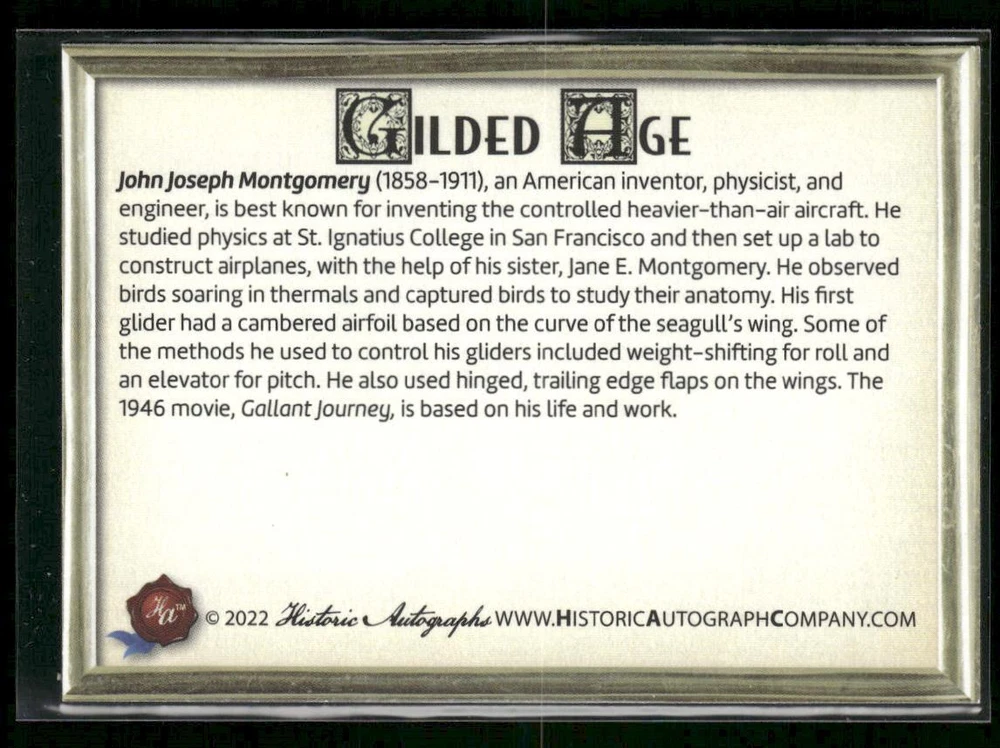 This is a nice example of a 2023 Historic Autographs Gilded Age #108 John J. Montgomery Other important information about this card: In 2023 John J. Montgomery played for the . Please check out our other listings for more great cards.