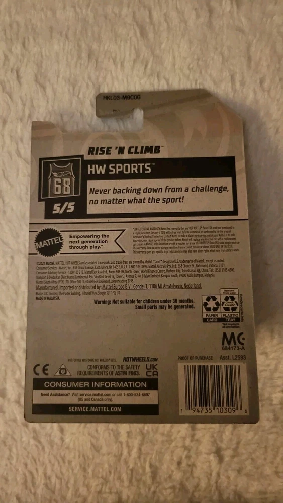Character Family:CarsGender:Boys & GirlsVehicle Year:2023Year of Manufacture:2023Customized:NoAutographed:NoScale:1:64Vehicle Make:Hot WheelsBrand:Hot WheelsSeries:Hot Wheels Treasure HuntVehicle Type:CarModel:Rise 'N ClimbAge Level:3-4 Years, 4-7, 8-11 Years, 12-16 Years, 17 Years & UpColor:BlueTheme:HW SportsMaterial:DiecastCountry/Region of Manufacture:MalaysiaFeatures:Chase, Special Edition, Unopened BoxRecommended Age Range:3+