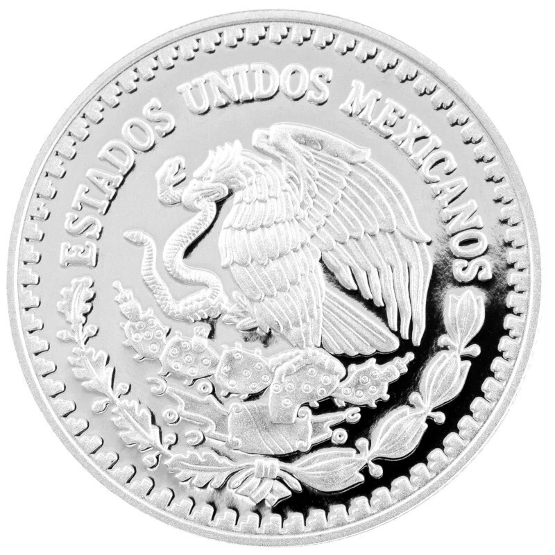 Mint: Banco de Mexico Quality: PROOF Alloy: 99.9% Fine Silver Diameter: 33 mm = 1.299 in Weight: 15.5517 g = 1/2 troy oz Mintage: 4,000 pcs. Box/Capsule: No/Yes Certificate: No Libertad coins are Mexico’s official silver bullion coins and have obtained world renown for their design. Unlike most other countries’ official bullion coins, the Mexican Libertads do not have a face value. The reverse shows the winged Victoria, the symbol of Mexican independence, sometimes also called the Angel of Independence, standing in front of two volcanoes, Popocatépetl and Iztaccihuatl. The obverse features a relief design of the Mexican National Shield, surrounded by the legend "Estados Unidos Mexicanos" (United Mexican States).