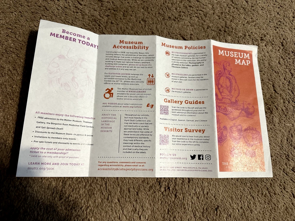 This 2023 Mutter Museum Map Pamphlet is a must-have for collectors and enthusiasts alike. With its detailed information and stunning visuals, it is a perfect addition to any collection. Made in the United States, this brochure is a high-quality item that is sure to impress.Featuring a variety of topics, including 1960-Now, Brochures, Paper, and Collectibles, this pamphlet is a great resource for anyone interested in the Mutter Museum. Whether you are a seasoned collector or just starting out, this item is sure to provide hours of enjoyment. Don't miss out on the opportunity to add this amazing piece to your collection today! 2023 Mutter Museum Map pamphlet in near mint condition, as shown in the photos. This map was used once to navigate the Mutter Museum of The College of Physicians of Philadelphia. It has been kept in between the pages of a book since use. Please feel free to contact me with any inquiries.