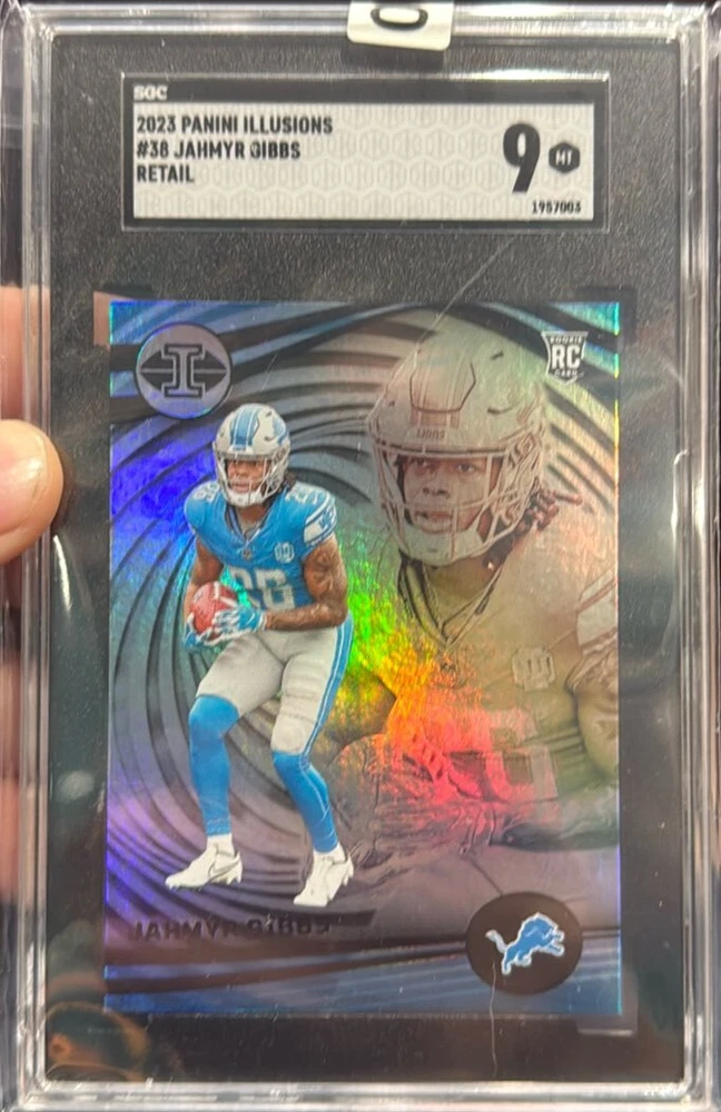 About Me Other Listings Feedback Add to Favorites Contact Me Striking Cards 901 2023 Panini Illusions Jahmyr Gibbs Rookie Detroit Lions #38 No stock photo / These are real scans or pictures Details Description: Jahmyr Gibbs Category: Football Year: 2023 Product: Panini Illusions Team: Detroit Lions Card Number: 38 Rookie: Yes Dimensions: 3½" x 2¾" SKU: FT B0001 R01 D (621) Listing By Kronocard trading cards software v2.7.0.0