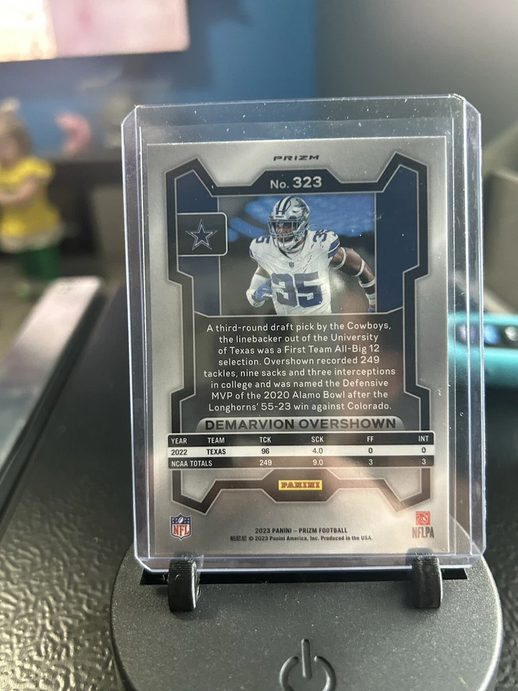 2023 Panini Prizm Football Demarvion Overshown Silver Prizm Rookie RC Cowboys. Condition is Ungraded. Shipped with eBay Standard Envelope for Eligible Items up to $20.