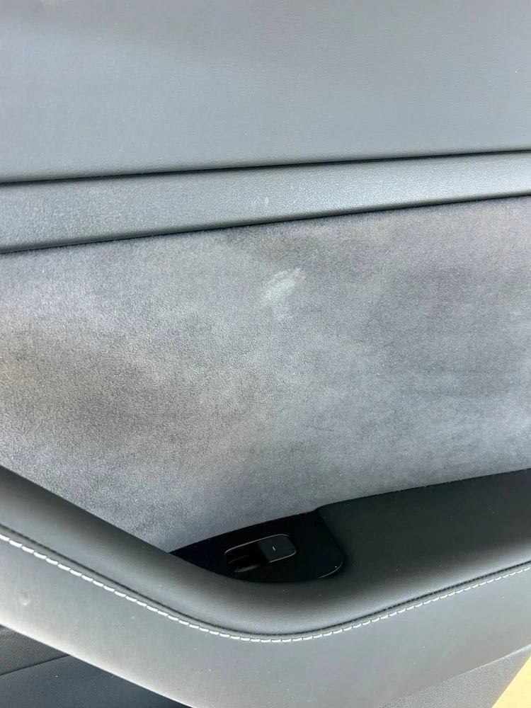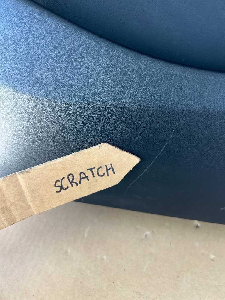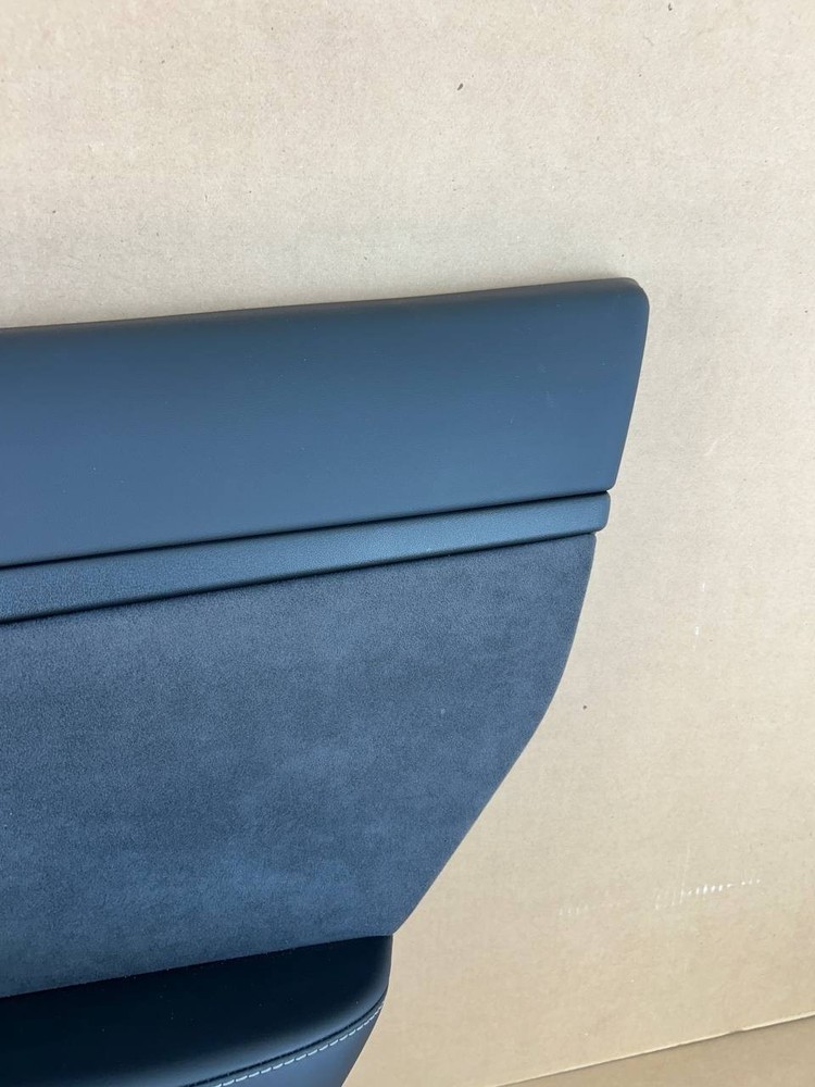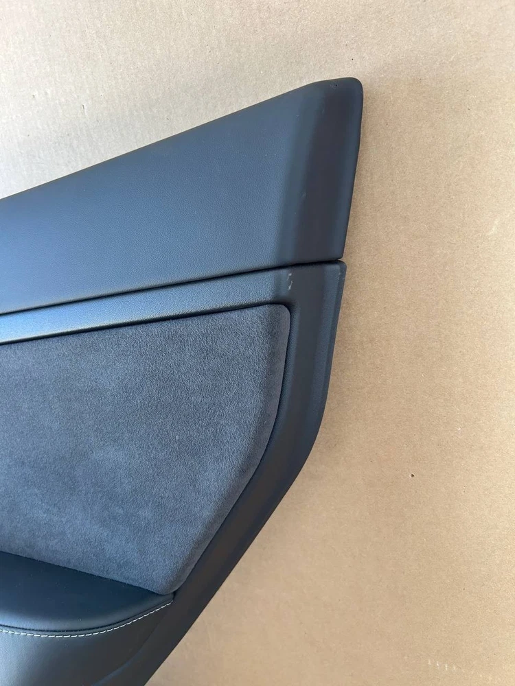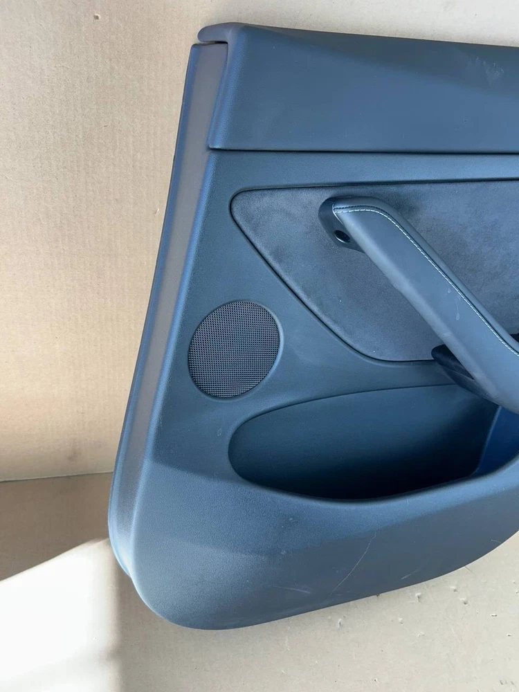 The product is an OEM Tesla Model Y Rear Right Door Trim Panel in black color. This door panel is specifically designed for models 20-23 and has the OE/OEM part number 1588129-91-B. Despite having scratches, this genuine Tesla part offers a perfect fit and high-quality construction, making it ideal for replacing a damaged or worn door trim panel on your Model Y.
