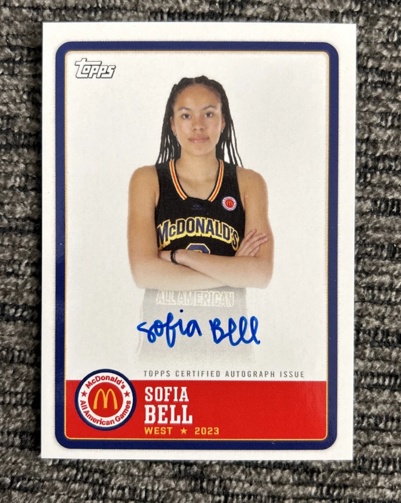 This 2023 Topps Chrome McDonald's All American trading card features Sofia Bell, a rising star in the National Basketball Association (NBA). The card is made of high-quality paper and is a short print, making it a valuable addition to any sports trading card collection. The card is designed with a parallel/variety of paper and features the Gameday name, making it a must-have for fans of the Oregon Ducks and basketball in general. This single card is a great way to show support for your favorite team and player, and it is sure to impress any collector or fan.