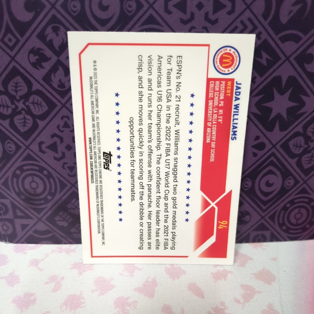 2023 Topps McDonalds Basketball Jada Williams #94 Arizona Wildcats