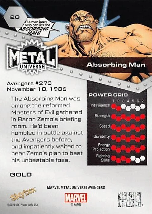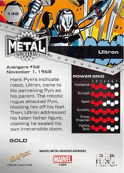 Dive into the Marvel Universe with the 2023 UD Marvel Metal Universe Avengers Gold Parallel Pick your Hero card. This premium collectible, crafted by Upper Deck, features the iconic Avengers in a stunning gold parallel variety, adding a luxurious touch to your collection. Each card celebrates the heroism of the Avengers with intricate artwork and design, embodying the spirit of the franchise. Whether you're a seasoned collector or just starting, this card is a must-have to honor your favorite Marvel protectors. Select your favorite hero and bring home the golden excitement of the Marvel Metal series. Thank you for your interest in our items on e-bay. Item: The item you receive will be the one in the picture, unless you are purchasing from a bulk / you choose lot. We do not grade these items so please inspect the picture closely to verify the condition of the item. Items in a bulk listing may not be the one pictured depending on quantities, but should reach the excellent condition threshold Most Items are NM/Mint and/or pack fresh, but some items may have some wear. We do not sell items in poor condition unless it is noted under condition. We mark everything else excellent condition (not NM) because opinions on an items condition varies greatly. All items are authentic, but we did have a run of fakes get by us from a large collection we purchased. Please notify us immediately if you suspect fake or counterfeit items are listed or have been purchased by you Communication: We will always be courteous in our messages with you. Our team will be even happier to assist you if you do the same. Contact us first with an issue. After e-bay gets involved, we can no longer help you and issues will be left up to e-bay to manage. Feel free to contact us at any time before or after a sale with any concerns. We will be glad to help but return messages could take up to 2-3 days although we aim for same day. Returns: We do not accept any returns except in the case of a clear mistake made by our team. We will work with you towards a satisfactory conclusion in all cases. We will work with USPS to resolve any issues of missing or damaged shipments Shipping: We ship the cheapest way possible to save you money except for the following instances- All Items over $20 will ship USPS Ground or equivalent Any items that will not fit in the cheapest shipping packaging (example: More than 4 cards in a 5x7x envelope). These will ship USPS Ground or equivalent Any Items valued over $100 will get extra insurance purchased at our expense to protect your investment USPS can be Slow, so please allow 7 days after the item is late before filing a claim. In most cases the item shows up. We combine shipping usually if the difference is greater than five dollars over paid vs.actual cost. We attempt to package all items securely using paper or bubble wrap. Cards will be in Top Loader, Padded envelope, or between ding protectors