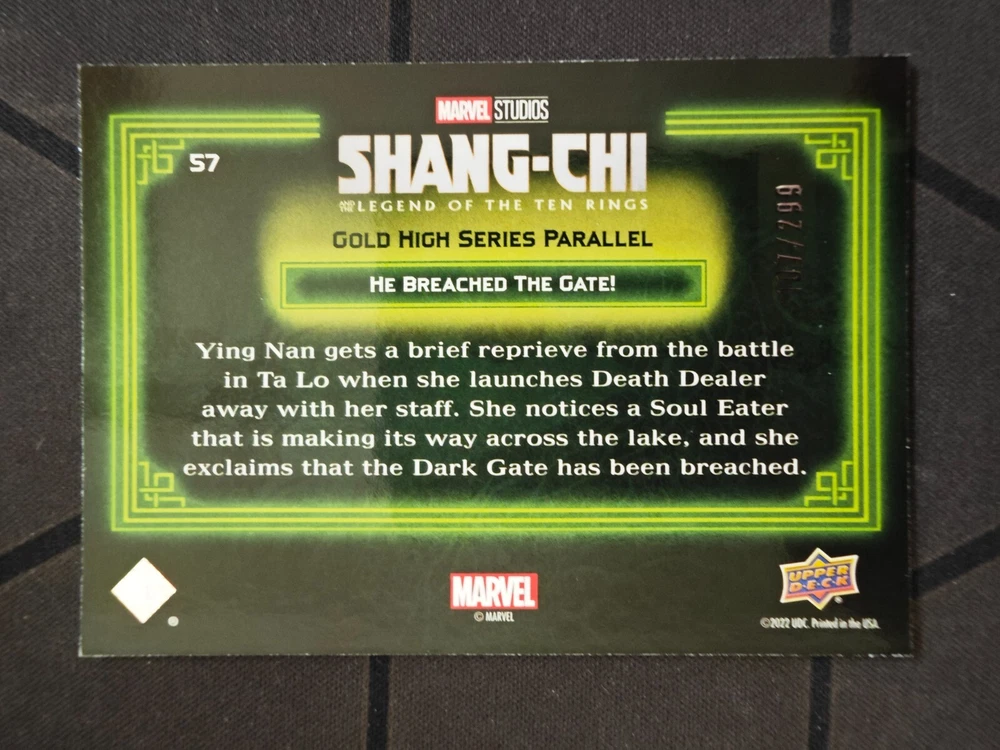 Year Manufactured: 2023 Card Size: Standard Franchise: Marvel (MCU) Language: English Type: Non-Sport Trading Card Parallel/Variety: Gold Set: 2023 Upper Deck Marvel Shang-Chi Manufacturer: Upper Deck