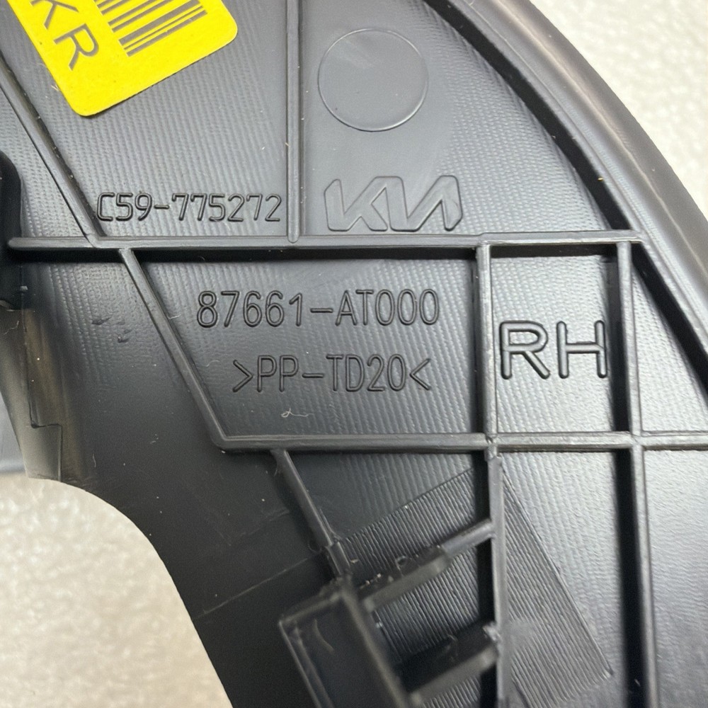 The product is a genuine OEM front left driver door corner cover trim with speaker for a 2023-2025 Kia Niro. It is made of black plastic and is a direct replacement part with the manufacturer part number 87661-AT000. The product does not come with a manufacturer warranty, but it is a high-quality and authentic Kia brand part designed specifically for the front left driver side of the vehicle. It is a single piece that is essential for maintaining the interior of the car in its original condition.