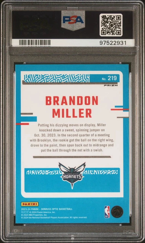 ✨BRANDON MILLER 2023 Panini Donruss Optic PURPLE #219 ROOKIE RC PSA 10 Gem Mint