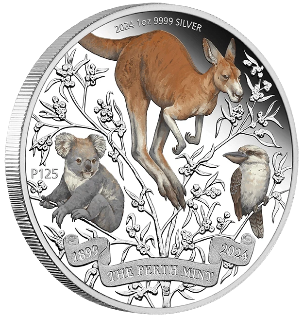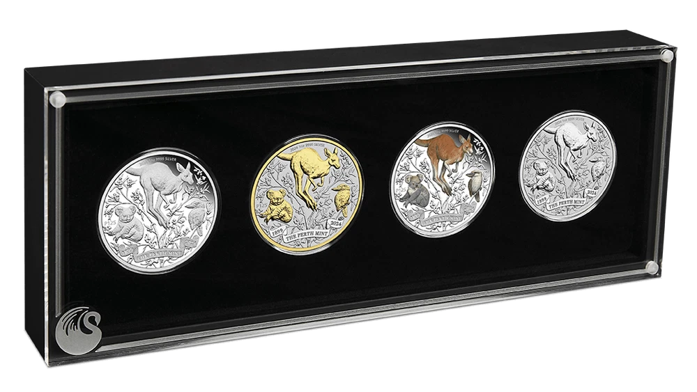 Home2024 Australia Perth Mint 125th Ann. Kangaroo 4 x 1 oz Silver Typeset Collection