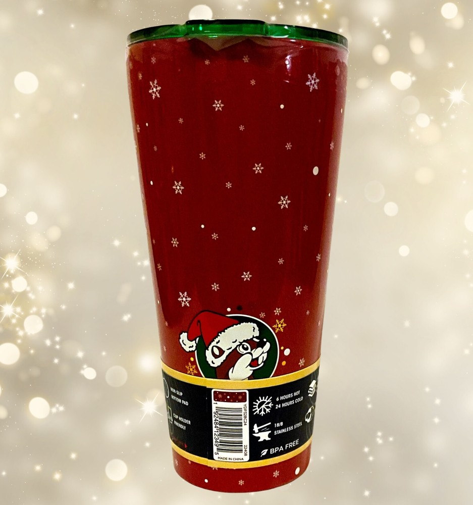 This limited edition Christmas 2024 tumbler is the perfect addition to your collection. With a 32 oz capacity, it's perfect for celebrating the holiday season. The tumbler comes with a green lid making it easy to drink on the go. Made of high-quality stainless steel, this tumbler is durable and can hold hot and cold beverages. It can keep beverages hot for 6 hours and cold for 24 hours. It's suitable for teens, adults, kids, and everyone in between. The tumbler is red in color with a green lid and features the Buc-ee Beaver in a Santa hat and says Buc-ee's Magic of Christmas. It's easy to clean and care for, just hand wash only. Get your hands on this tumbler and show off your love for Buc-ee's!