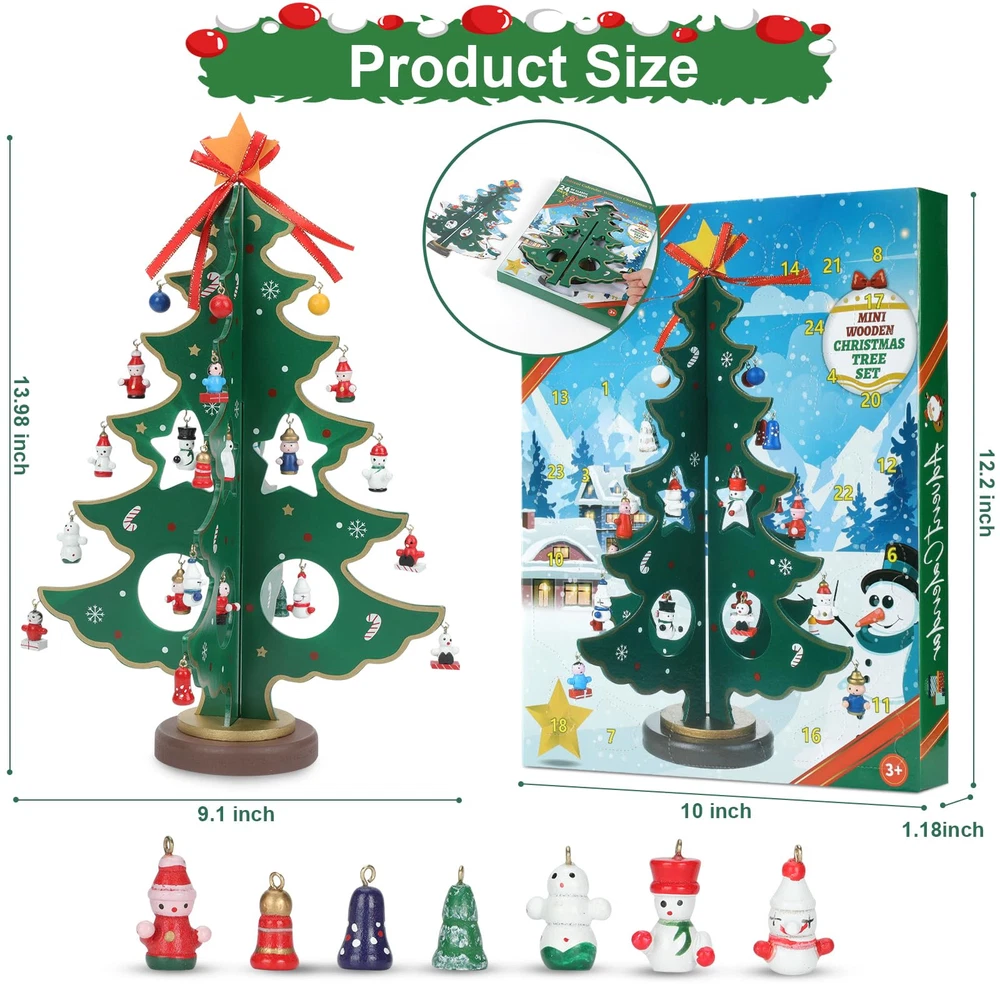 🎄【2024 Christmas Advent Calendar】: Get your excited for the Christmas season with the 2024 Christmas Vacation Advent Calendar! This charming set includes a sturdy wooden base, a Christmas tree, and 24 intricately designed decorations to count down the days until Christmas. 🎄【Christmas Tree Countdown Calendar】: Made from high-quality wood, durable to use can be used year after year. Each day leading up to Christmas, discover a new Christmas-themed decoration to hang on the tree and create a festive and elegant holiday atmosphere in your home. Watch the excitement build as you count down the days until Christmas with this festive calendar. 🎄【2024 Christmas Vacation Advent Calendar】: The 24 Days Christmas Tree Countdown Calendar is a delightful way to involve children in the holiday spirit and build anticipation for Christmas day. With non-and odorless materials, it's a safe and enjoyable way for to engage with the of the season. 🎄【Christmas Tree Home Decoration】:This Christmas advent calendar is a fun and interactive way to celebrate the holiday season with family and friends. Decorate the tree with the included ornaments and watch as the excitement builds towards Christmas day. Deck your halls, windows, or mantelpiece with these lovely decorations, spreading Christmas cheer throughout your home. 🎄【Christmas Gifts for 】:Give the christmas gift of holiday cheer with the Christmas Advent Calendar. Ideal for christmas gifts for boys girls and families, this Xmas tree countdown calendar is a festive addition to any home and will bring joy and to the Christmas season.