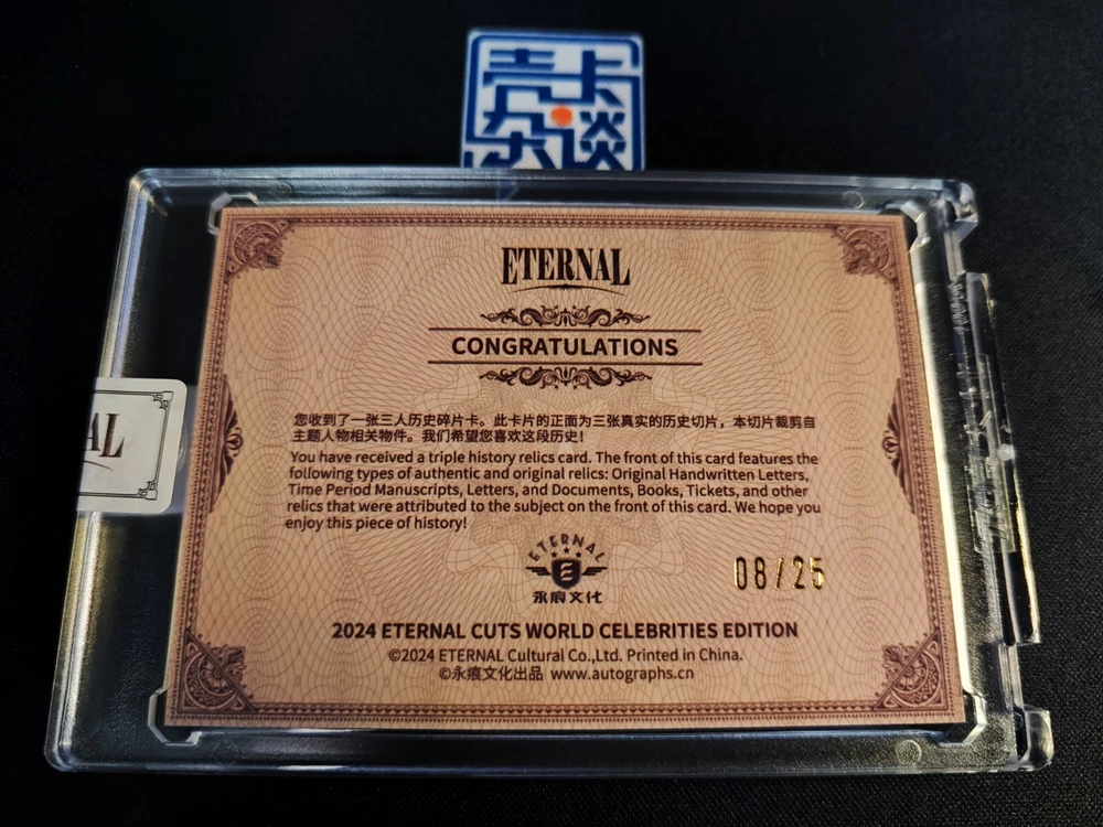 Character: Helen Keller, Agatha Christie, Mary Shelley Franchise: World Celebrities Features: World Celebrities Year Manufactured: 2024 Autograph Format: Cut Type: Non-Sport Trading Card Manufacturer: Eternal Autographed: No Country/Region of Manufacture: China Card Name: Authentic History Relic