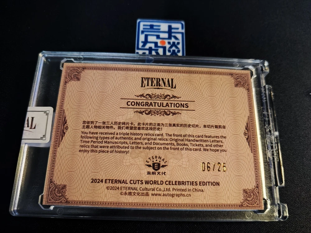 Franchise: World Celebrities Country/Region of Manufacture: China Features: World Celebrities Autographed: No Manufacturer: Eternal Autograph Format: Cut Character: Mark Twain, Charles Dickens, Rabindranath Tagore Type: Non-Sport Trading Card Year Manufactured: 2024 Card Name: Authentic History Relic