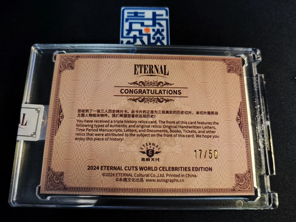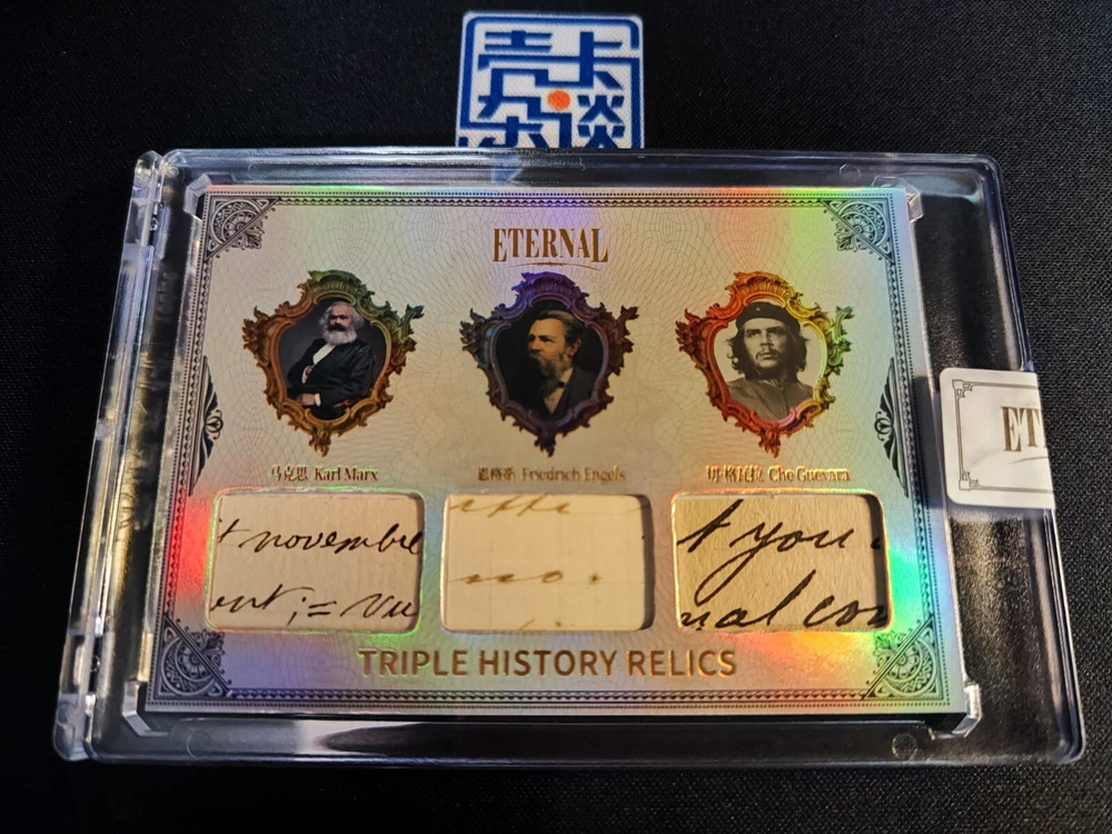 Franchise: World Celebrities Type: Non-Sport Trading Card Character: Che Guevara, Friedrich Engels, Karl Marx Autograph Format: Cut Year Manufactured: 2024 Manufacturer: Eternal Country/Region of Manufacture: China Card Name: Authentic History Relic Features: World Celebrities Autographed: No