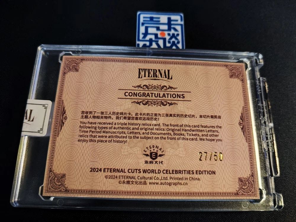 Franchise: World Celebrities Manufacturer: Eternal Card Name: Authentic History Relic Type: Non-Sport Trading Card Character: Marilyn Monroe, Audrey Hepburn, Vivien Leigh Autograph Format: Cut Features: World Celebrities Country/Region of Manufacture: China Autographed: No Year Manufactured: 2024