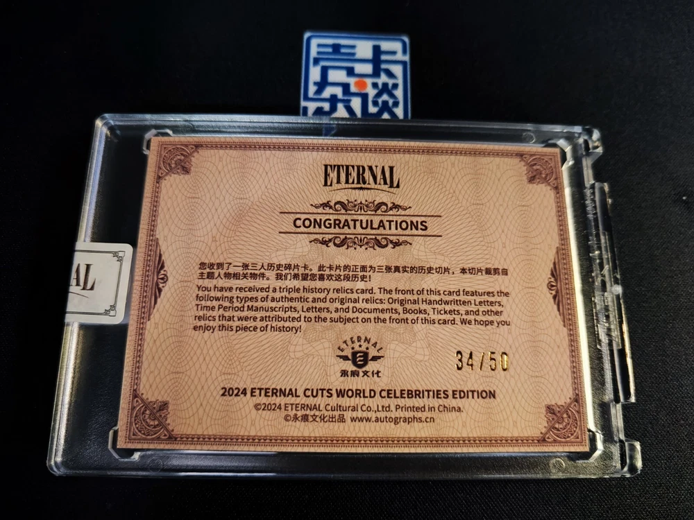 Franchise: World Celebrities Country/Region of Manufacture: China Card Name: Authentic History Relic Character: Ivan Turgenev, Leo Tolstoy, Maxim Gorky Manufacturer: Eternal Year Manufactured: 2024 Features: World Celebrities Autographed: No Type: Non-Sport Trading Card Autograph Format: Cut