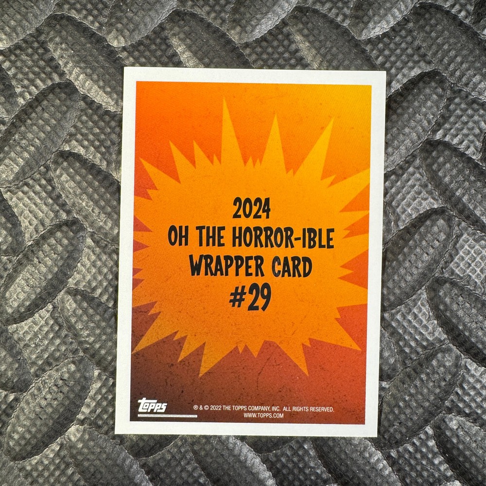 This listing is for a Garbage Pail Kids Oh, The Horror-ible Wave 6 "Wrapper Card" #29 Eatin' Aylmar from 2024. Any questions? Please ask before buying.