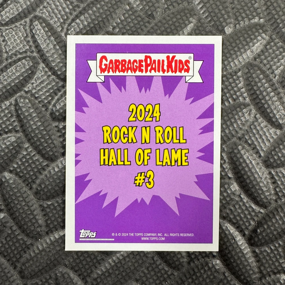 This listing is for your choice of any available 2024 Hall of Lame card from the drop-down menu above. Photos show front and backside of each card, be sure to scroll sideways to view front and backside photos! I am selling a #1 Rock Record with damage, the damage in question is a line down the middle of the front of the card. If you are going to put this card in a sleeve and then into a page of a binder, you will probably never notice the line. The line is just an indention, as if you ran your fingernail down the front - but this line is perfectly straight and almost perfectly down the center of the card. This is the way that it came from Topps. I considered sending it back for an exchange, but the cost of shipping, etc, I just decided to list at a price that is $10 less than one without the damage. Check out my other listings for inserts from this same series. Any questions? Please ask before buying. International "USPS First Class Mail" will not include a tracking number for this item, if you would like a tracking number please choose the "eBay International Standard Shipping" option when you check out. As with all of my "pick-a-card" listings, I will be shipping with "eBay Standard Envelope". The rules of this envelope state that it cannot be too thick, so please expect your order to be packaged as follows: 1 to 6 cards will be slid into a single sleeve, the sleeve will then be slid inside of a semi-rigid Card-Saver. 7 to 12 cards will be slid into a double sleeve, 13 to 18 cards into a triple sleeve, 19 to 24 cards into a quadruple sleeve(up to six cards per sleeve). The double, triple and quadruple sleeve shipping will not have the Card-Saver. If you buy more than 1 card and want it packaged with more than 1 Card-Saver(or 1 sleeve per card), I kindly ask that you contact me before purchasing to be sure that this is possible to have it done with the stated shipping charge, or if additional shipping would be required. If you do not contact me, then you can expect to receive your order packaged as I have explained here. Please do not expect rigid top-loaders to be included, I don't normally keep a lot of them in stock, but if you message me prior to ordering I will be able to see if I have any that can be included with your order - additional shipping may be required. In order to get free combined shipping from this and any of my other "pick-a-card" listings, you must add all of your cards to the cart and check out when you are done shopping. If you do not use the cart you will be overpaying on shipping and I cannot refund you on over-payed shipping. So please use the cart and get your FREE COMBINED SHIPPING!