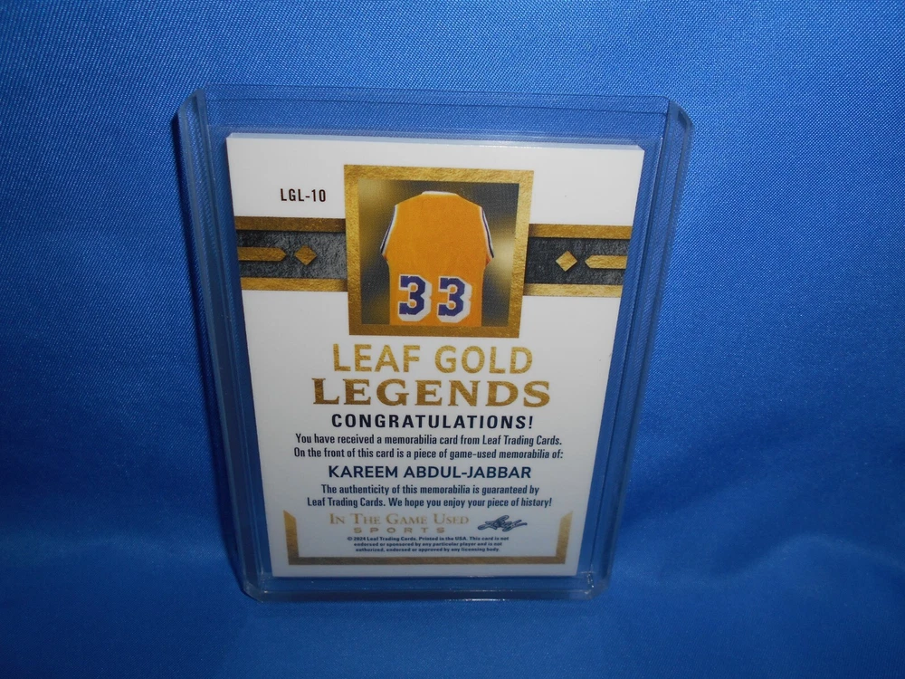 FOR KAREEM CARD SHOWN. I HAVE MANY MORE LEAF IN THE GAME USED SPORTS CARDS IN MY EBAY STORE AND OTHER AUTOGRAPH AND JERSEY CARDS IN MY EBAY STORE IN MY EBAY STORE ******FOR YOUR CONFIDENCE IN BUYING FROM ME, PLEASE SEE MY NUMBEROUS FEEDBACK SCORES AND COMMENTS****** COMBINE AUCTIONS TO SAVE MONEY ON SHIPPING . EACH ADDITIONAL CARD AUCTION WON WILL BE AN ADDITIONAL $.25 CENTS FOR COMBINED SHIPPING.