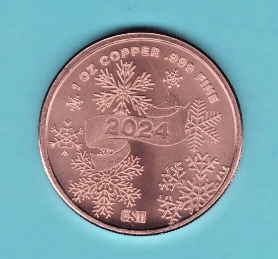 This is a 1 oz. .999 pure Copper Round, "2024 MERRY CHRISTMAS " LIMITED Christmas design, new for 2024 from the Golden State Mint... ...FOR MORE THAN 4 COINS, MESSAGE ME FOR A PO STAGE QUOTE... .....P&H is $2.25...... Each 1 oz. copper coin will be shipped in a coin flip with an insert for labeling, (not in a baggie) like others. IMPORTANT-- See Details below, at the bottom, for this $2.25 shipping. Just added, ground advantage shipping option, faster delivery full tracking, that INCLUDES A CAPSULE!! for $4.95. Email with any questions,.... See my store for 500+ other diff. Copper Rounds.... .THE LARGEST SELECTION ANYWHERE.. Copper is a soft metal. I try to ship the best I can find. BUT, These rounds are made in and shipped in Bulk from Various Mints. So there may be small imperfections on them, such as dings and small scratches, especially on the proof like ones. All Copper Medallion Coins & Bars that are 1 ADVP oz. or smaller will be shipped with the NEW limited shipping system that is now available thru eBay. Delivery time is slow, approx. equal to Media Rate, or 2-4 weeks, and just shows SHIPPED/DELIVERED no formal tracking.