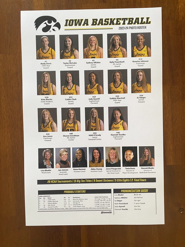 2024 Women’s College Basketball National Championship Iowa Game Flipcard. Caitlin Clark’s last college game!! Date: April 7, 2024 Teams: Iowa vs South Carolina Size: 11”x17” media