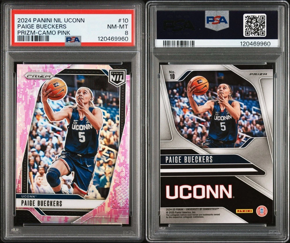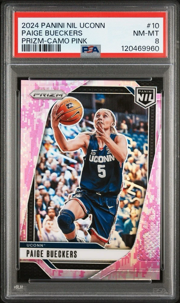 2024 PANINI NIL UCONN #10 PAIGE BUECKERS PRIZM-CAMO PINK PSA 8. Condition is Graded. Shipped with USPS Ground Advantage.