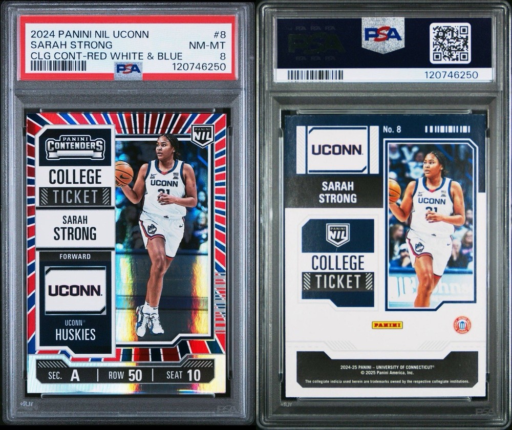 2024 PANINI NIL UCONN SARAH STRONG CLG CONT-RED WHITE & BLUE POP 2 PSA 8. Condition is Graded. Shipped with USPS Ground Advantage.