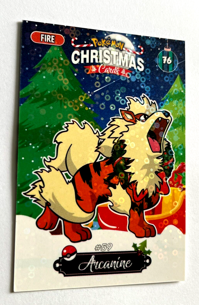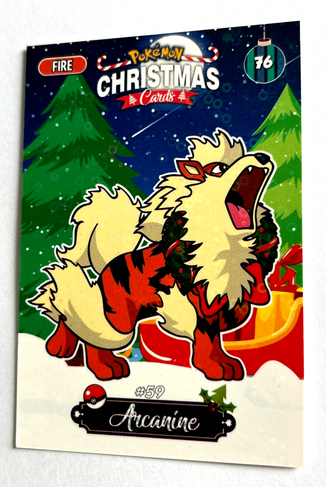 Plantilla Alegre CARD POKEMON CHRISTMAS EDITION "HOLIDAYS POKEMON COLLECTION" POKEMON: # 059 ARCANINE MANUFACTURED BY COLLECTOONS YEAR: 2024 TYPE: CARD SIZE: 5.9 x 8.9 cm ** MORE PASSION, MORE COLLECTIBLES ** SHIPPING WORLD WIDE WITH TRACKING CODE ** DO NOT FORGET CHECK MY OTHERS ITEMS FOR SALE AND COMBINED SHIPPING. ** CPKM013-076