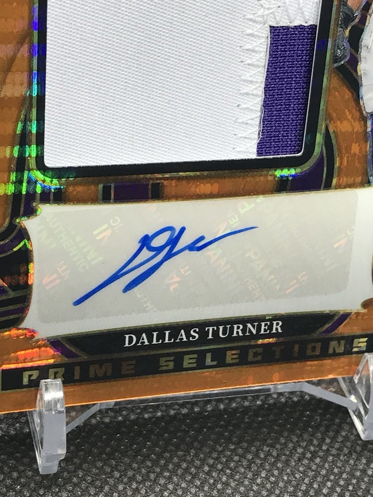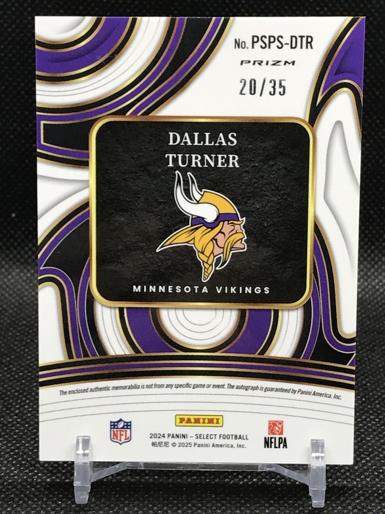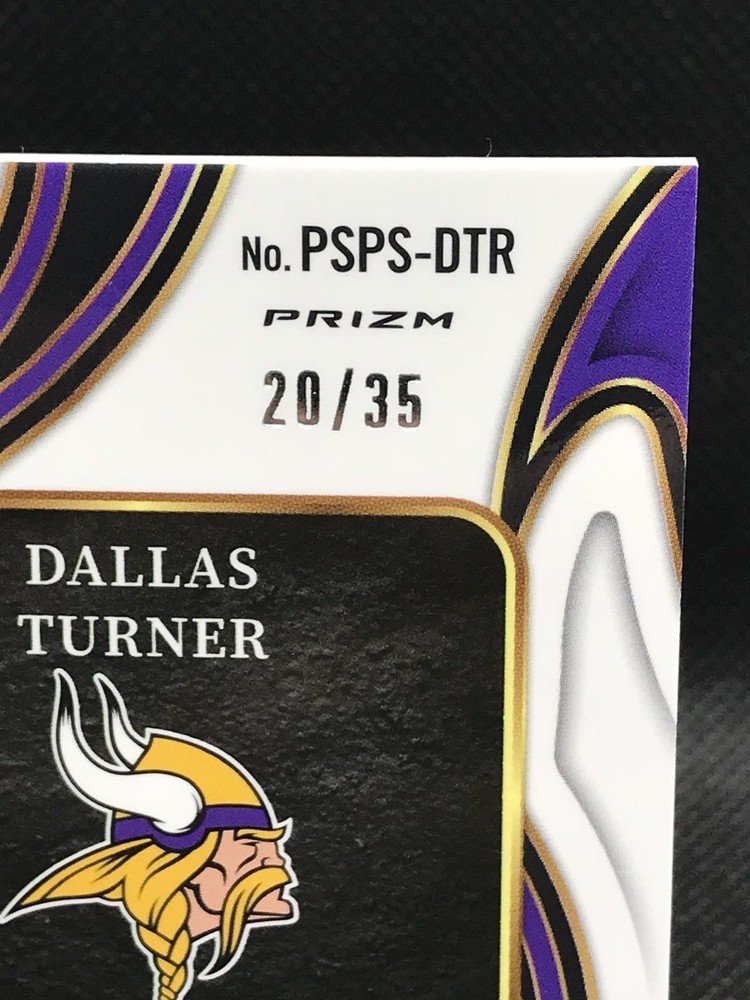 The 2024 Panini Select NFL Dallas Turner RPA Neon Orange Pulsar FOTL /35 trading card is a highly collectible item featuring the rookie player Dallas Turner from the Minnesota Vikings. This limited edition card is part of the 2024 Panini Select set and is made of high-quality card stock. It is a parallel variety with a serial number, making it a unique addition to any football card collection. The card is in near mint condition and is a valuable piece for any fan of the National Football League.