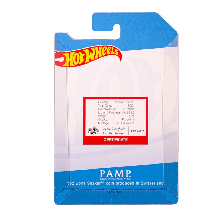 FREE SHIPPING ON DOMESTIC ORDERS New releases Deals Exclusives Bullion Gold Graded Licensed Standing behind our products & our name for over a century SINCE 1915 SHOP BY CATEGORY Animal Theme Art Coins Coin Sets Comics, Notes, & Foils Deals Famous Figures & Landmarks Gold Coins GR Reserve Exclusives Graded Coins Holiday Theme Licensed Products Lunar Calendar Nature Coins Premium Bullion Rare Certificate Numbers Shaped Coins Warriors & Gods Other PARTNERS & AFFILIATIONS STORE NEWSLETTER Add us to your Favorites and receive exclusive emails about new items and special promotions! Sign up 2024 Solomon Islands Hot Wheels Bone Shaker 1 oz Silver Colorized Coin Product Description Hot Wheels is the #1 selling toy in the world! For more than five decades, Hot Wheels™ has provided adrenaline-fuelled vehicle play that ignites the challenger spirit in every kid with the most outrageous and innovative cars and track systems. The Bone Shaker was created by Hot Wheels designer Larry Wood and is a classic hot rod come to life - or the afterlife - in this stripped down truck rod. The skull grille and skeleton hands around the headlights make it a menacingly frightening opponent, captured in a truly special collectible 1oz pure silver legal tender coin with iconic packaging. It is a classic hot rod come to life - or the afterlife - in this stripped down truck rod. The skull grille and skeleton hands around the headlights make it a menacingly frightening opponent. Officially licensed Hot Wheels™ Bone Shaker™ shaped legal tender coin 1oz of pure silver engraved and colorized with texture and a glossy finish! Individually serialized Custom shaped capsule in iconic pegboard packaging Contact Shipping Payment Returns To contact our Customer Service Team, simply click the button here and our Customer Service team will be happy to assist. Domestic Shipping Options - Free shipping USPS Ground Advantage UPS Ground Saver International Shipping Options – Calculated USPS Priority Mail International UPS Worldwide Expedited UPS Worldwide Saver UPS Standard to Canada Handling time Will ship within 1 business day of receiving cleared payment. Ship From Location Attleboro, Massachusetts, 02703, United States Note to international buyers The item price and shipping charges do not include import duties, import taxes, and customs clearance fees. These charges are the buyer's responsibility. Please check with your local customs office to determine what these additional charges may be prior to bidding or purchasing an item. If your order is returned to GR Reserve due to your refusal to pay duties or taxes, or if the carrier (for example, Federal Express or UPS) was unable to deliver your order, you agree you are responsible for any return shipping fees, additional duties, or applicable taxes for returning the package back to GR Reserve. In addition, if your package is returned to GR Reserve, we will not reship your order unless and until we are paid in full for any return shipping costs, duties, taxes we have had to pay or advance for you as well as any subsequent re-ship fees back to you. Immediate payment is required upon selecting "Buy It Now" or upon checking out through the cart. We accept payment via U.S. PayPal accounts and all Major Credit Cards, Debit Cards & Google Pay. We are legally required to collect sales tax in those states and localities where we maintain a physical presence. The applicable amount of sales tax charged to an order will be calculated based on the shipment destination's state and local sales tax laws. Thank you for shopping with us on eBay! Standard Other eBay Mastercard® Earn up to 5x points when you use your eBay Mastercard®. Learn more GR Reserve’s return, refund, and exchange policy is limited to (30) business days from the date that you received your item. If you find you have received a defective item, please contact us, and include detailed photos. GR Reserve will then assess whether the product is eligible for a return, refund, or exchange. For approved exchanges, you must follow all instructions provided by us, including packaging the product appropriately. We are responsible for the cost of return domestic shipping and the risk of loss during the return shipment. Refer to eBay Return policy for more details. You are covered by the eBay Money Back Guarantee if you receive an item that is not as described in the listing. Free Shipping On all domestic order 100% SATISFACTION GUARANTEED About Feedback GR Reserve - Attleboro, MA 02703